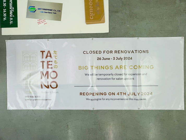 - Waterproof vinyl signs printed with waterproof solvent ink, suitable for outdoor use.