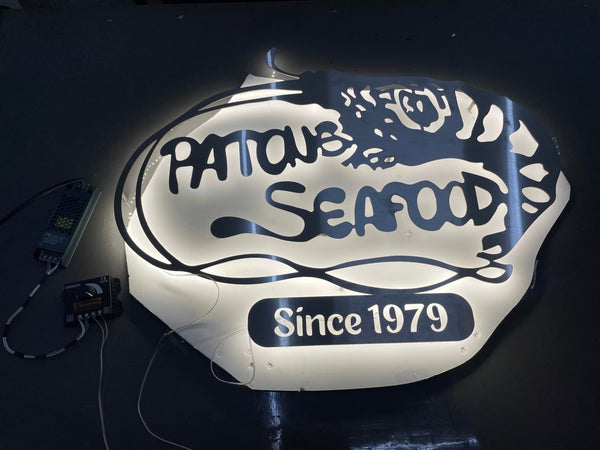These signs remove the background, leaving only the metal patterns or text. They are ideal for luxury signs and can be combined with backlighting for a more dynamic effect.