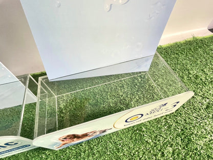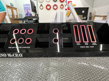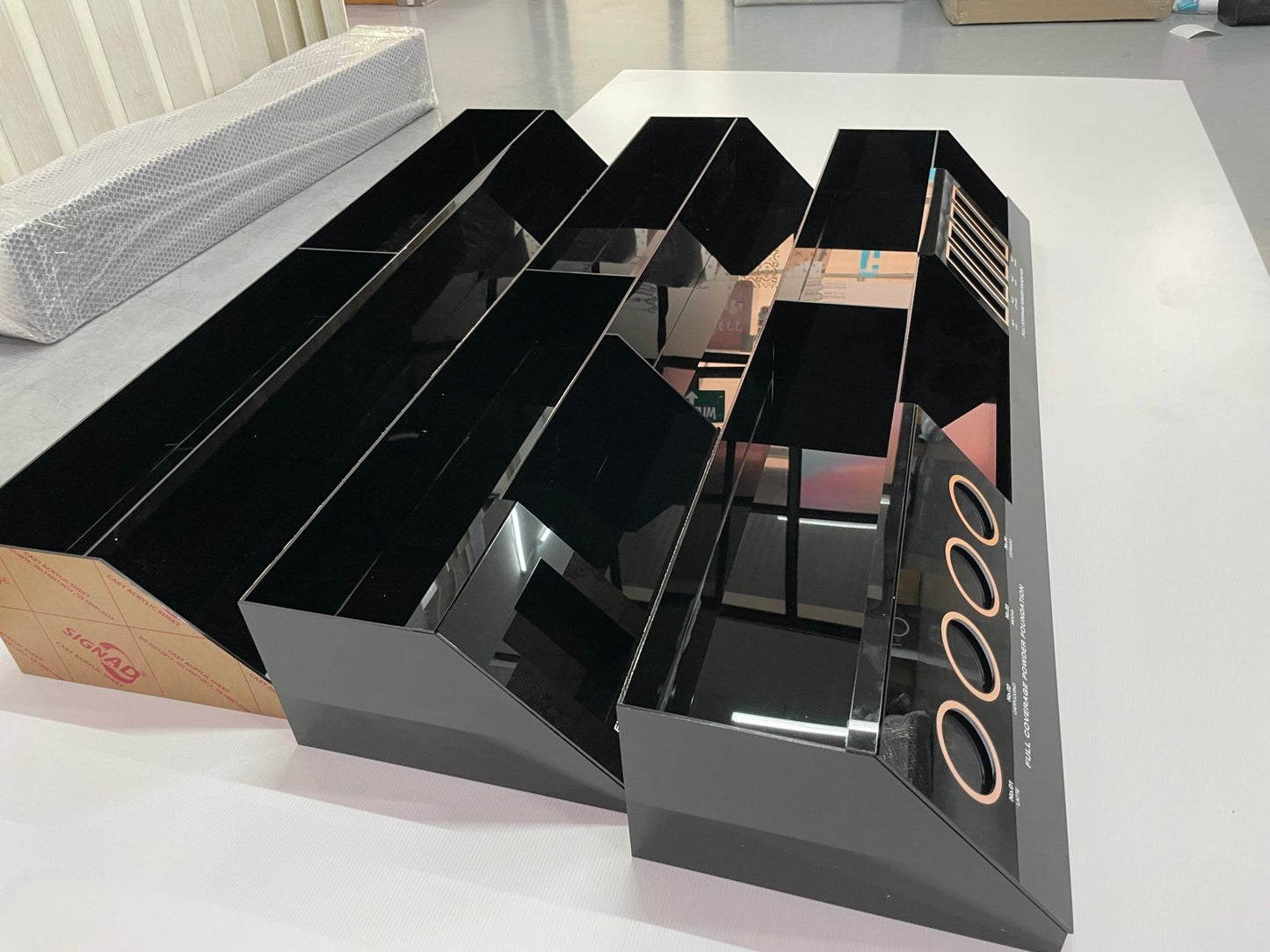 Acrylic product shelves Acrylic display work Sample product display box Sample product display shelves can use clear acrylic. White acrylic, opaque, translucent, or a variety of other colors come together beautifully. Thickness from 1 - 20 mm.