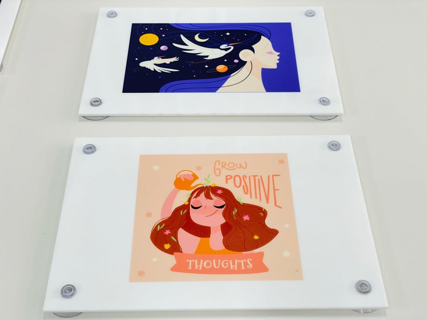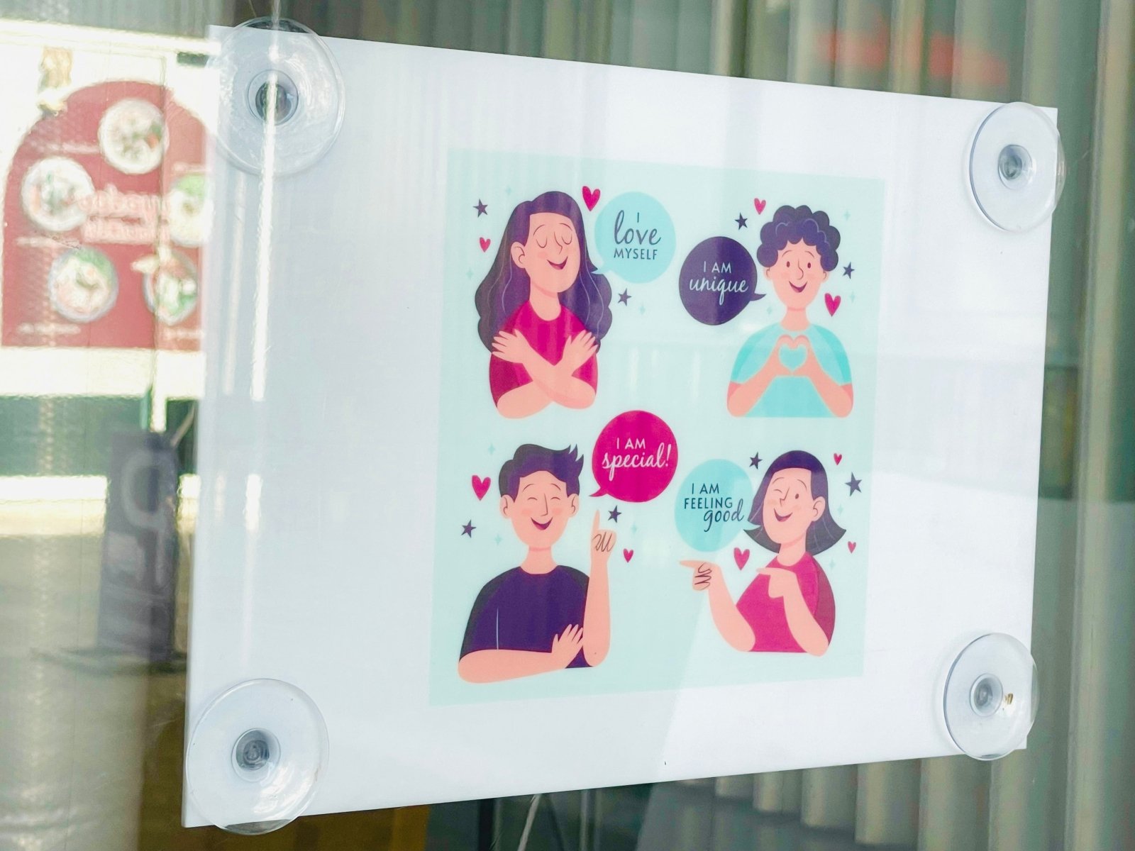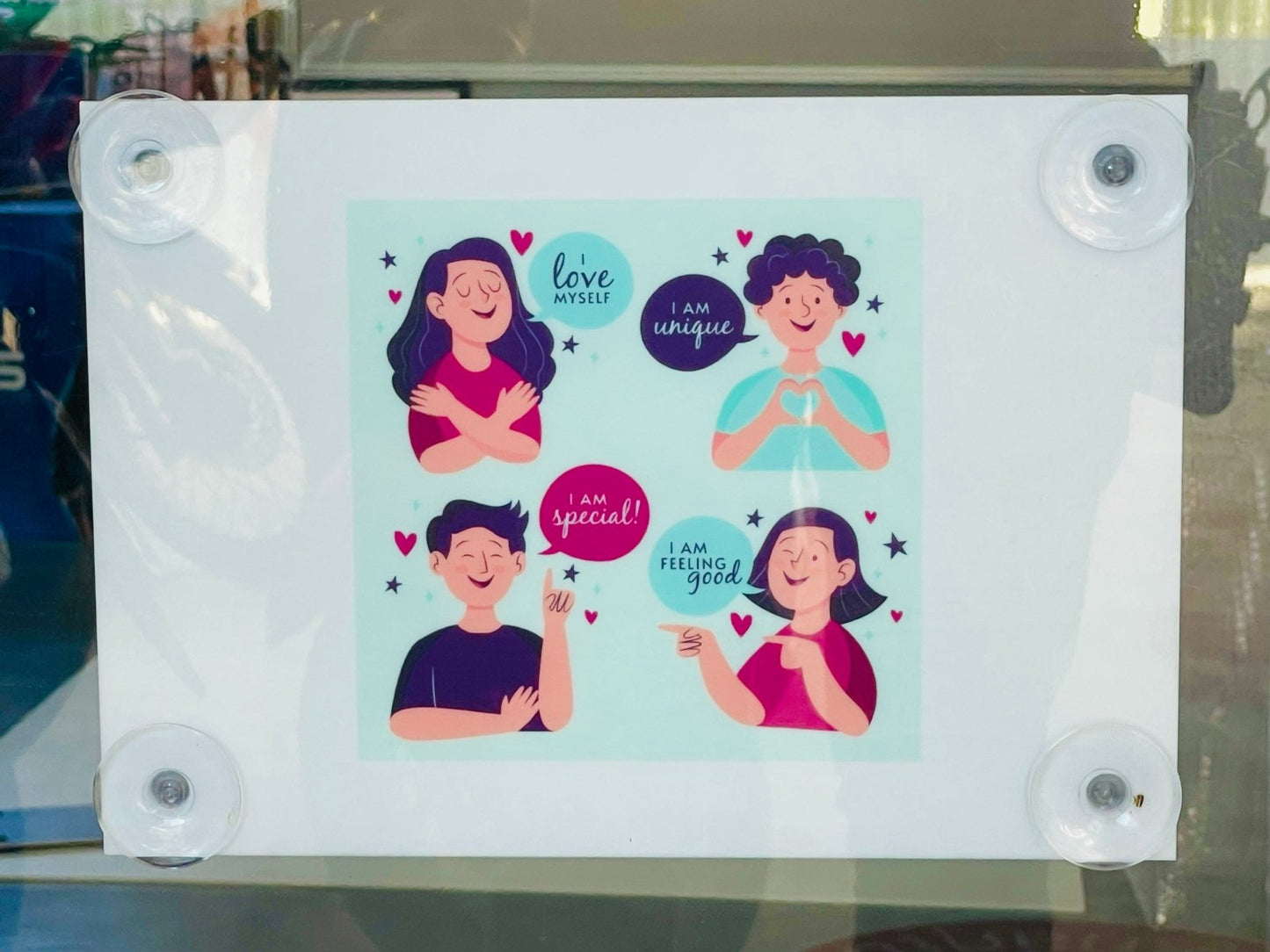 Glass suction cup hanging sign
