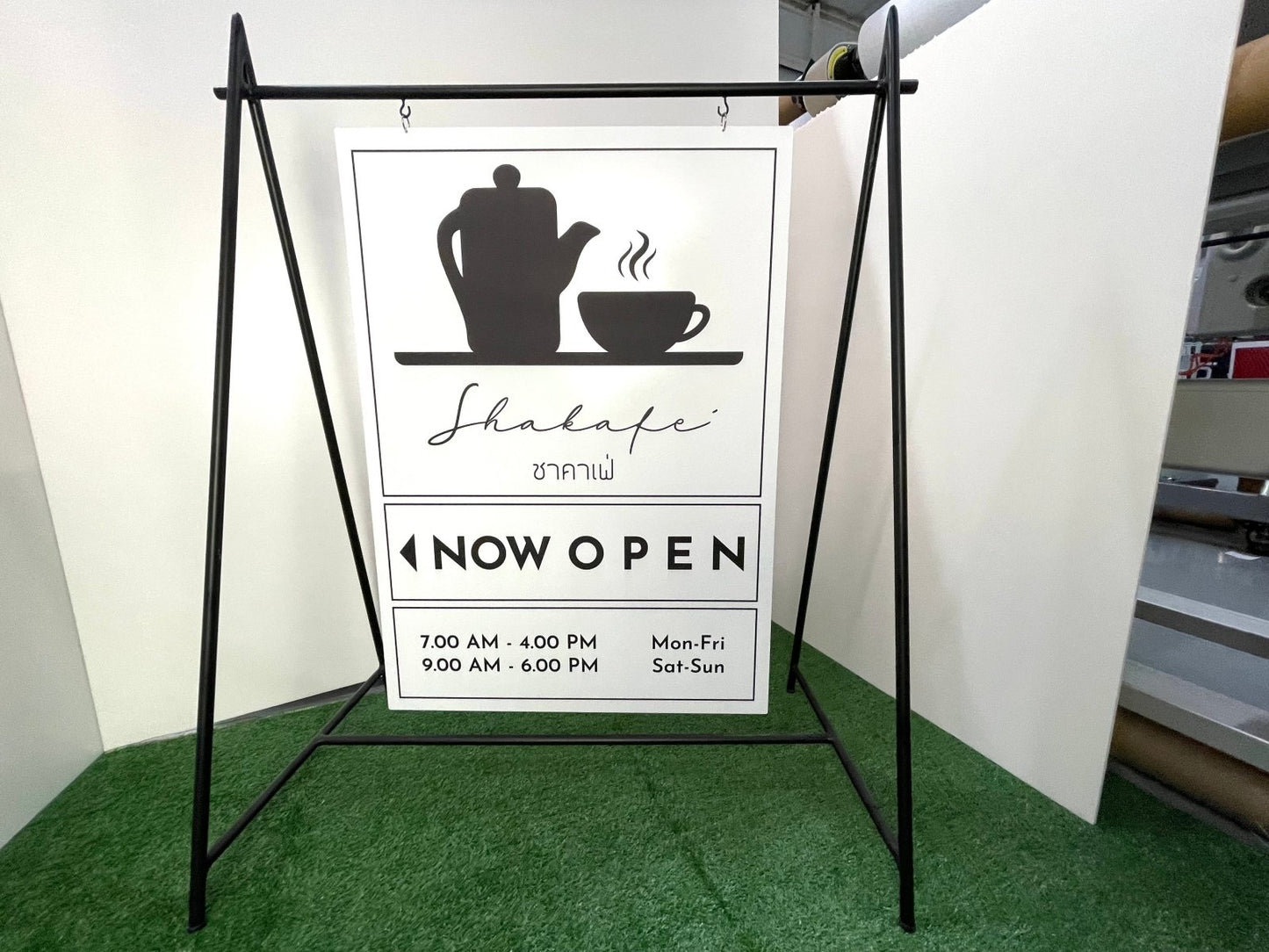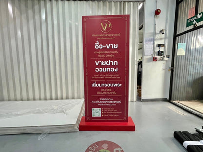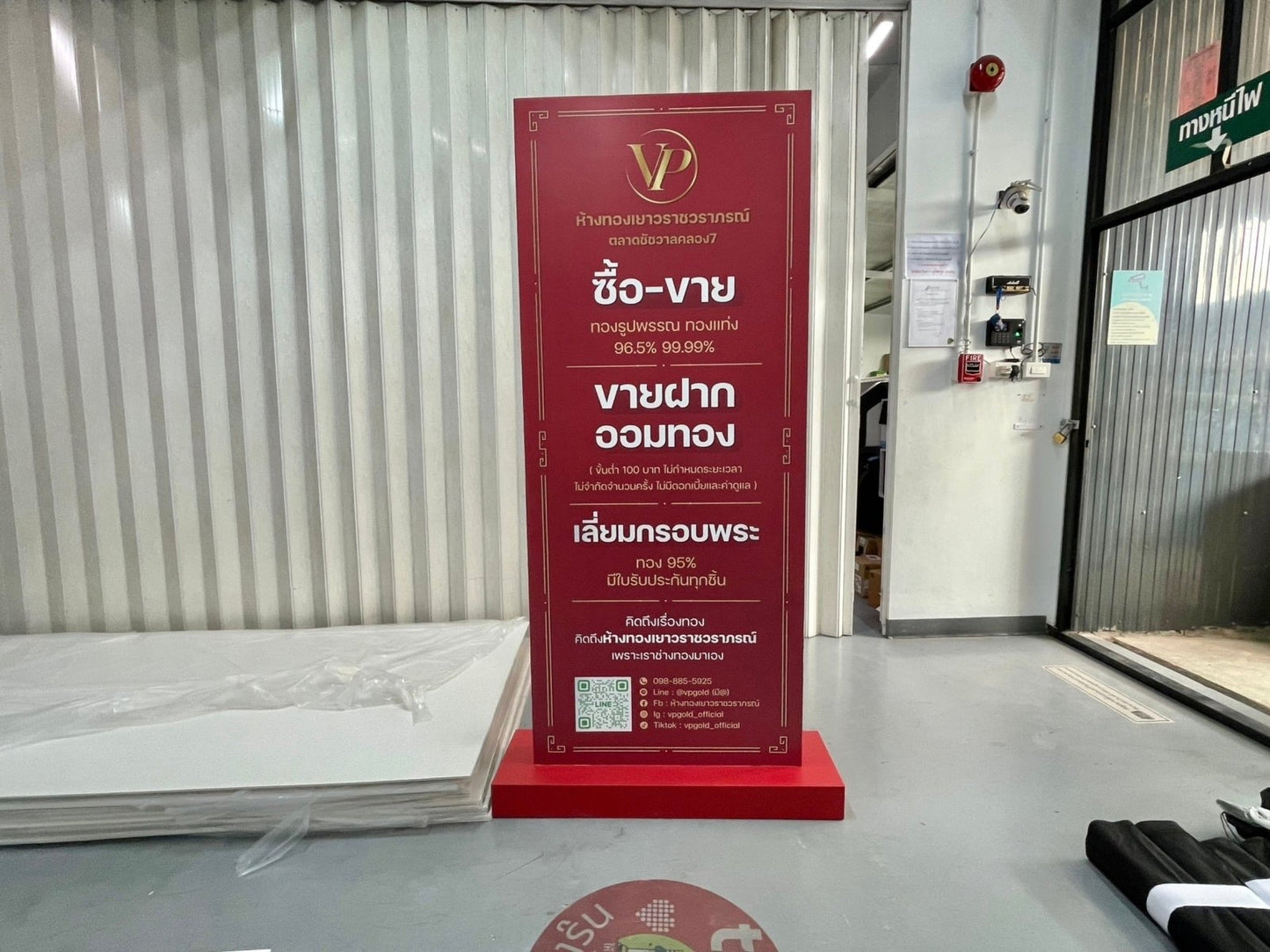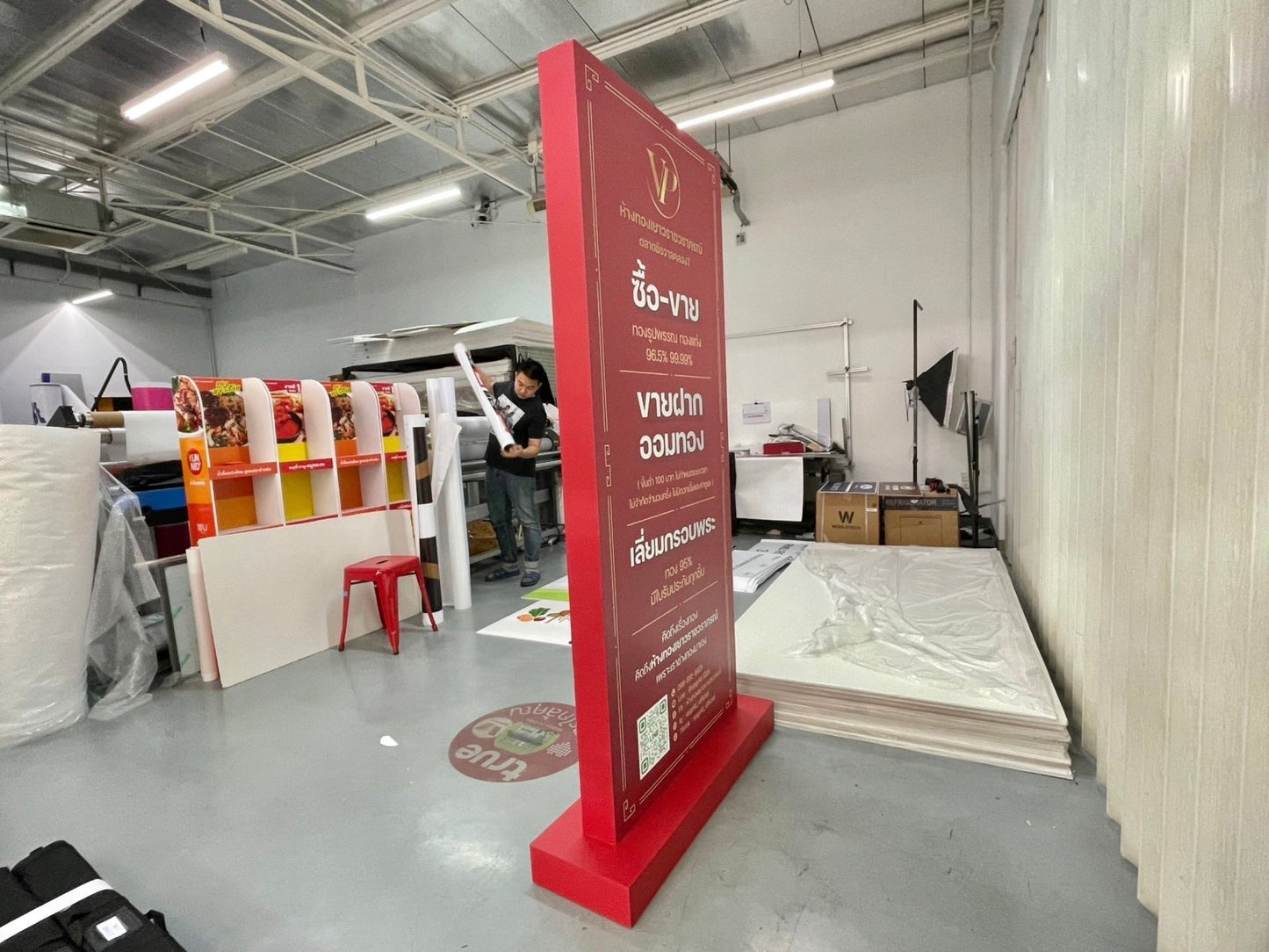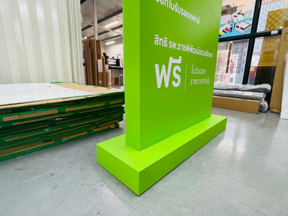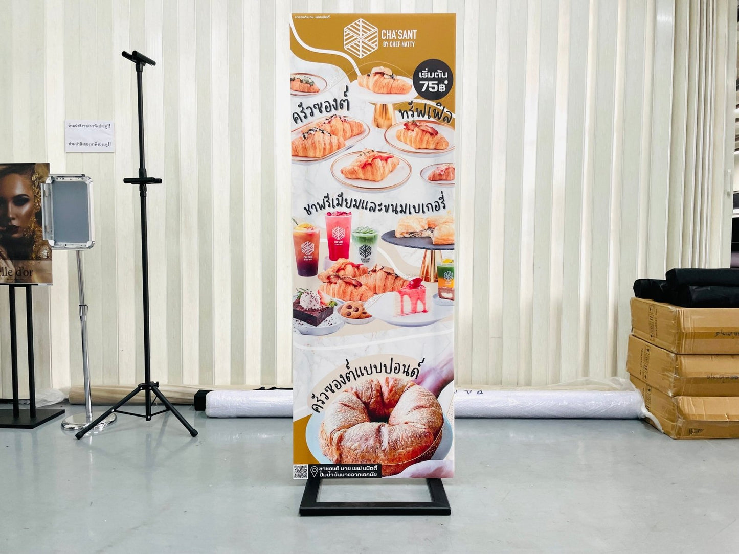 Interested in making public relations signs, floor standing signs, beautiful public relations signs, advertising floor signs, contact Line @octopusdesign , get answers or call 081-776-8329