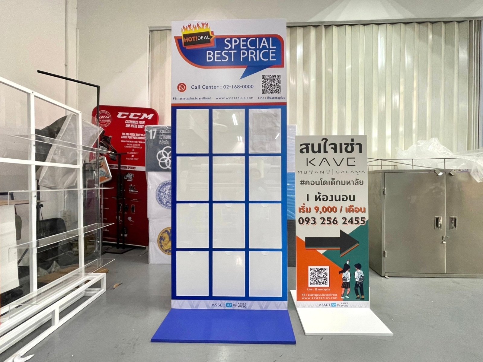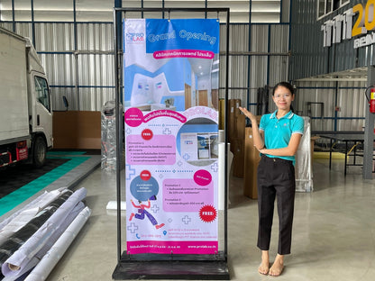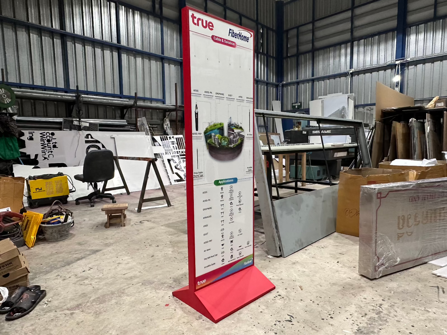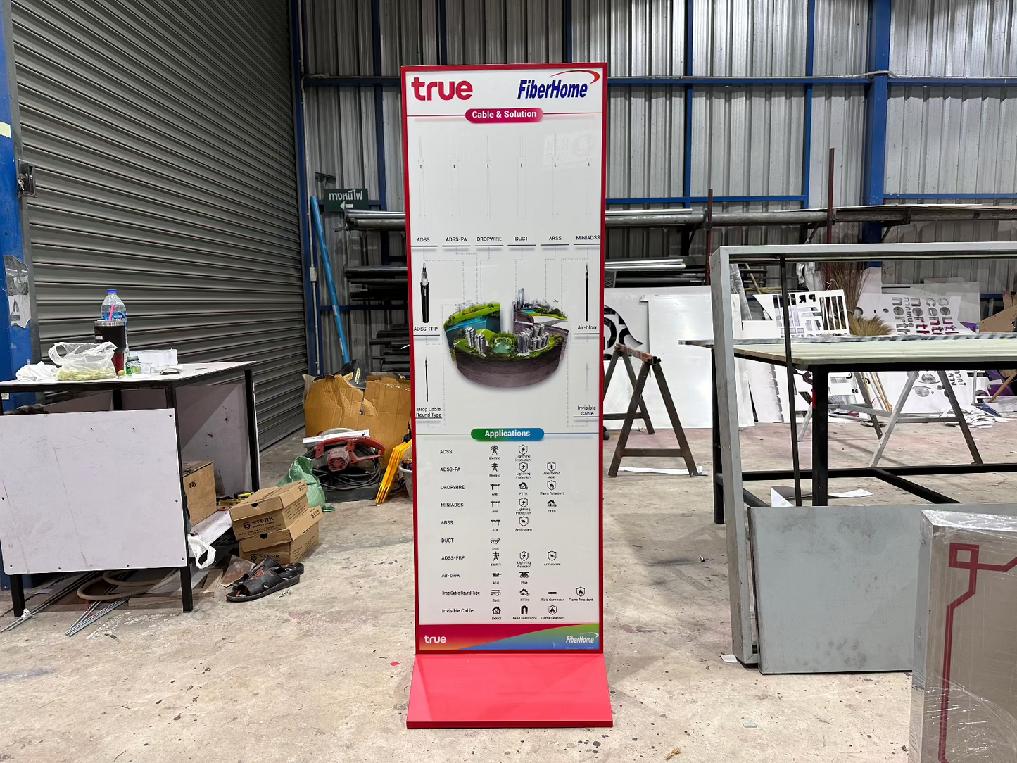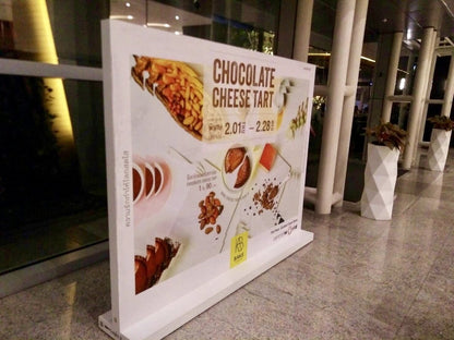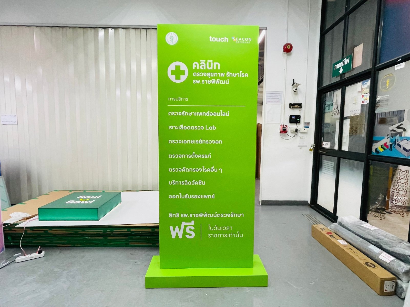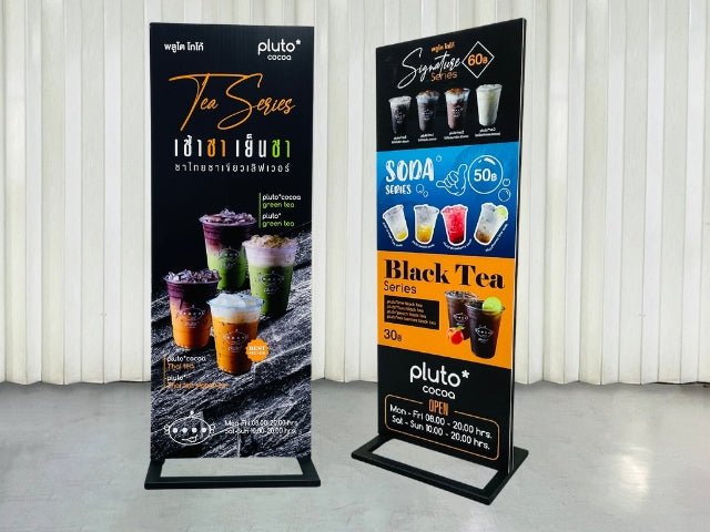 Interested in making public relations signs, floor standing signs, beautiful public relations signs, advertising floor signs, contact Line @octopusdesign , get answers or call 081-776-8329
