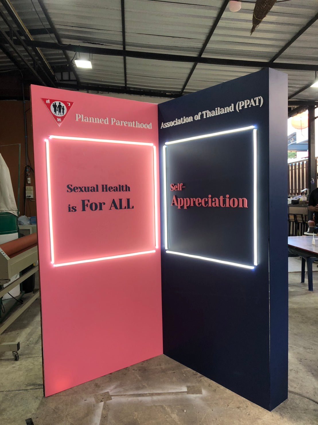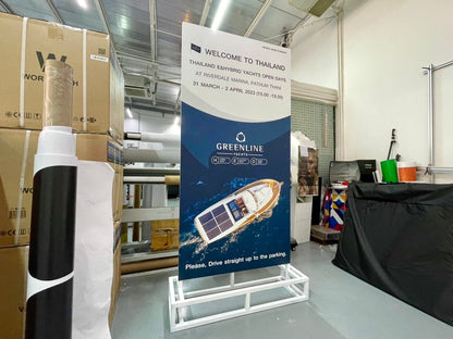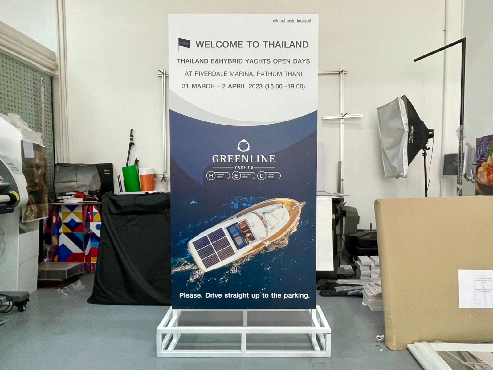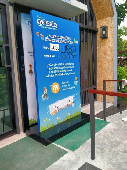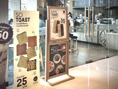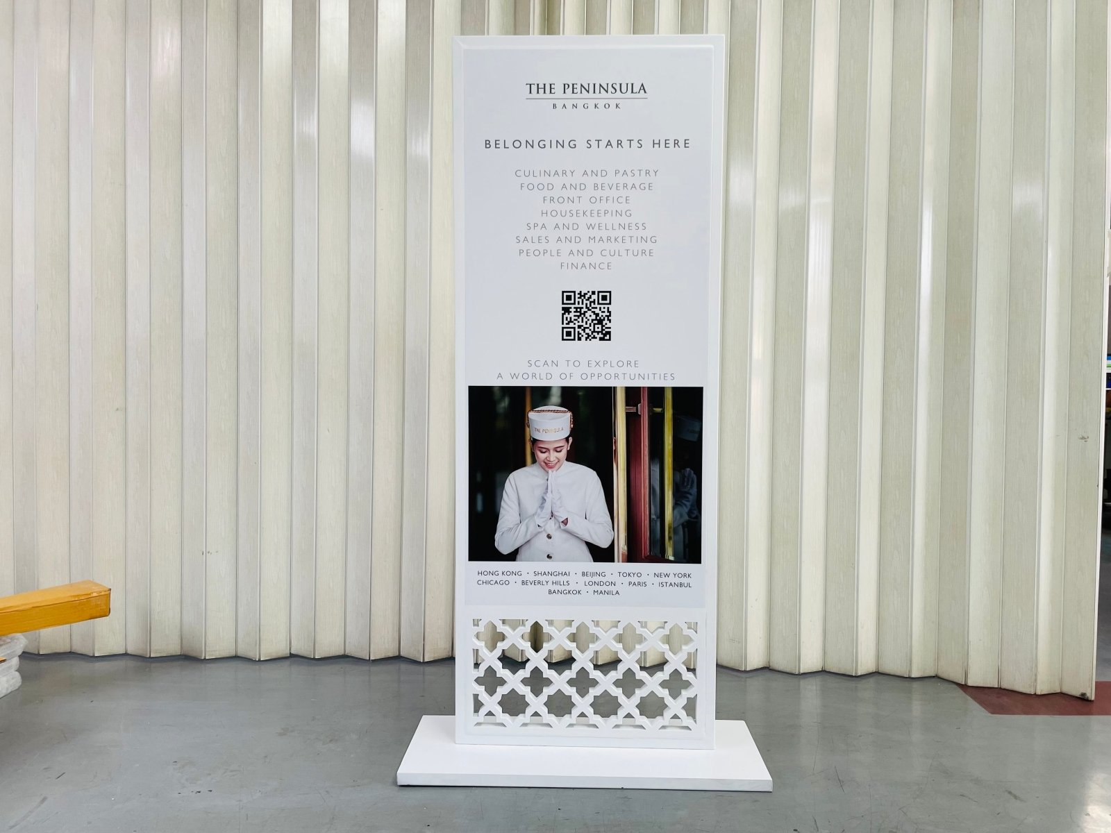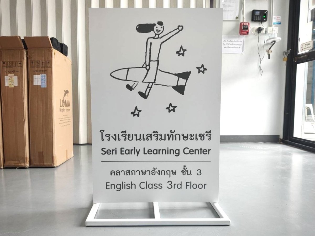Interested in making public relations signs, floor standing signs, beautiful public relations signs, advertising floor signs, contact Line @octopusdesign , get answers or call 081-776-8329