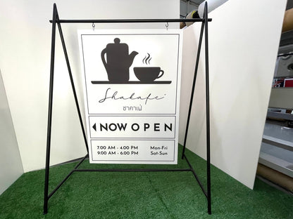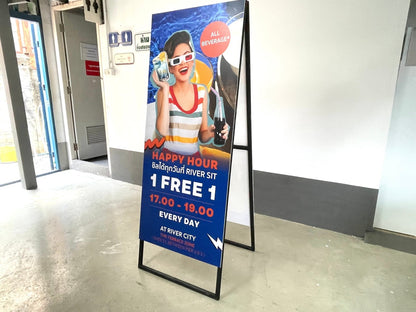 - An external floor-standing sign is priced higher than an internal floor-standing sign. Because the materials used need to be strong. Resistant to weather, resistant to sunlight and rain. The color of the artwork is not easy to fade. scratch resistant