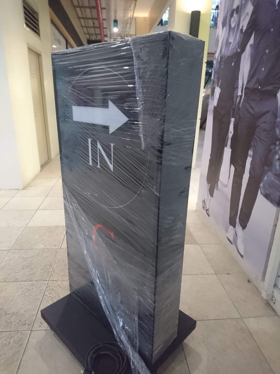 - Public relations floor sign inside . Beautiful public relations floor sign for interior work. the price is not very high Because inside the building, there is no need to use materials that are very resistant to weather conditions, such as signs for exhibitions. In-store publicity sign, poster stand, floor standing poster banner