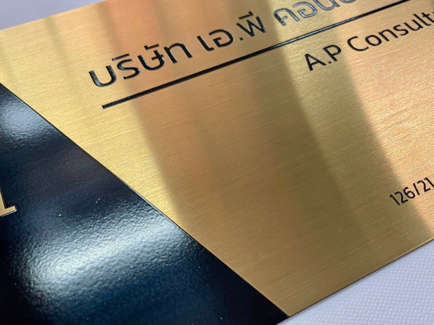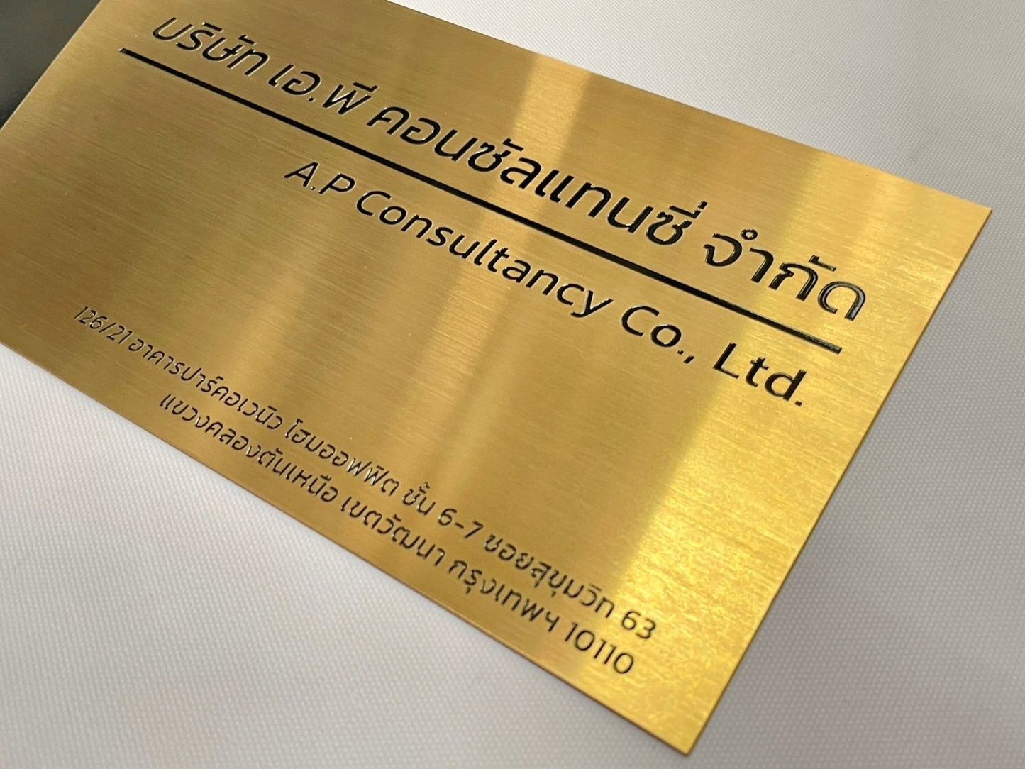 Interested in making an acid etching company name label? corrosive stainless steel sign or UV printing techniques , contact Line @octopusdesign to get answers or call 081-776-8329