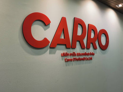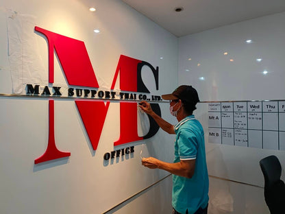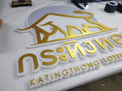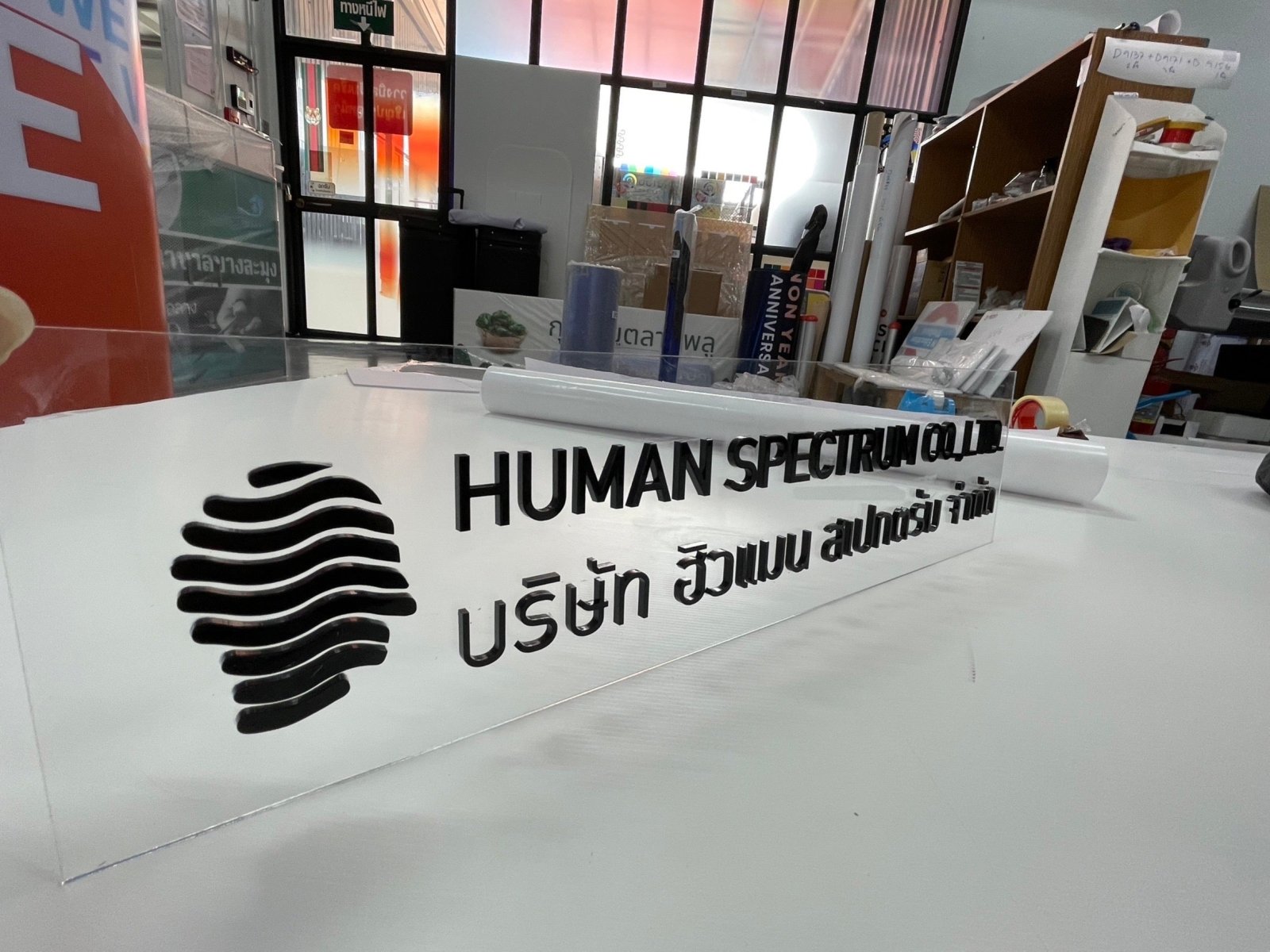 Embossed acrylic can be applied in a variety of ways. Acrylic surfaces come in a variety of shades to choose from. or can be painted according to the desired specification By using acrylic as the base of the label sheet, printed or perforated stickers are rolled down. Acrylic sign with sticker is a popular cheap company sign or can be applied to make a hanging sign. Signs, signs, directions as well. If you want to have additional features, we will use acrylic to laser cut into letters or laser cut, perforate, grooving into the desired logo. and then assembled to decorate Acrylic embossed sign as needed. Translucent acrylic is very popular in use. Translucent acrylic front light sign We hide the LED lighting system in the sign and let the light glow in front of the sign, beautiful.