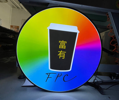 Circular light box sign, light box (Light Box), made of vinyl LED light signs, circular light signs, storefront light boxes, bright and clear, print work doesn't drop, beautiful, fresh, sharp.
