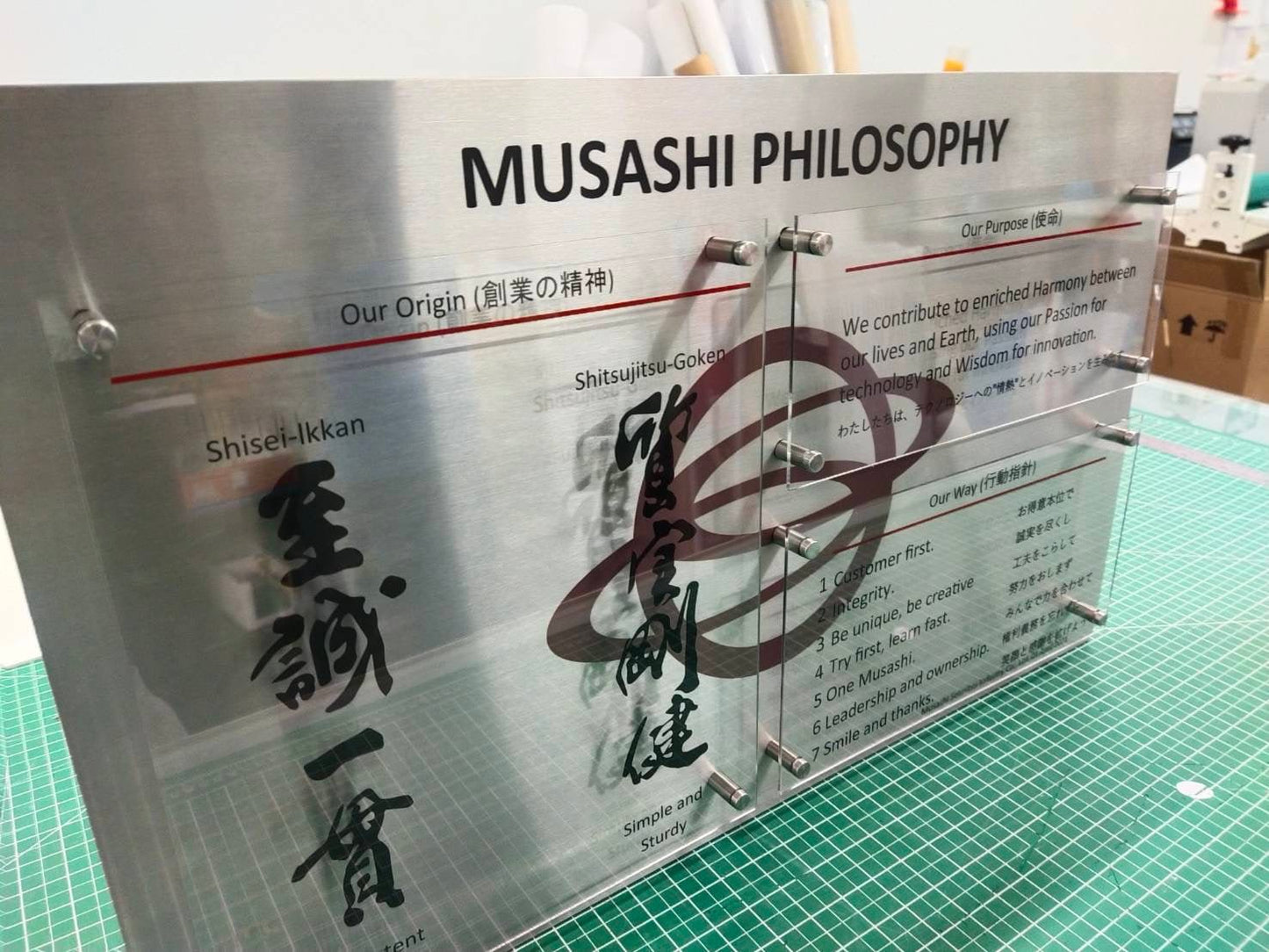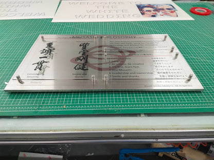 The technique of making layered signs starts with designing the workpiece to have a layered appearance by separating the layers of each material. Then, each piece is assembled together in order. A variety of materials can be used, such as acrylic, PVC, wood, aluminum, steel, etc., depending on the design and use.