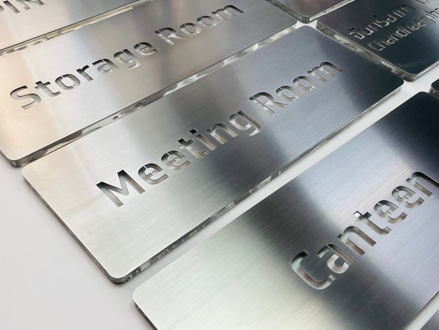 Hairline Silver Stainless Steel Sign, Hairline Silver