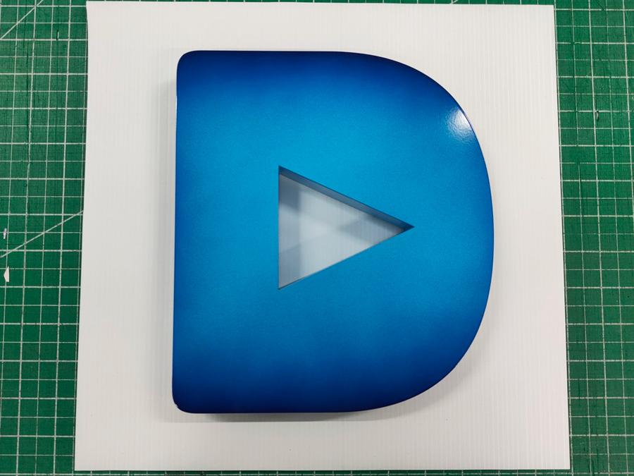 Interested in making a gradient logo label? Letter logo sign, company sign, sync sign, metal letter sign, composite sign , line @octopusdesign , get an answer or call 081-776-8329
