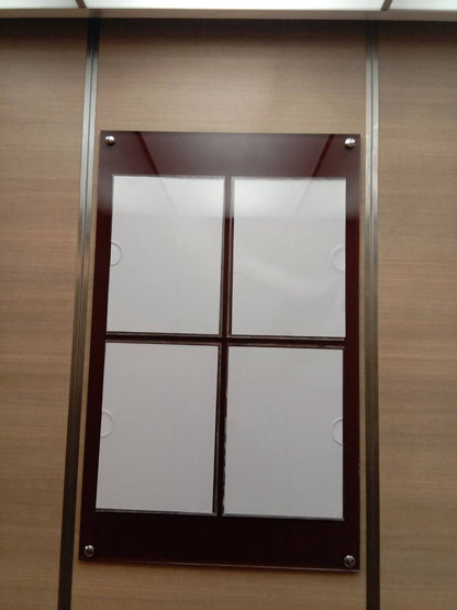 Acrylic publicity board Clear acrylic board mounted on the wall Wall mounted acrylic frame, Acrylic Display, clear acrylic sign. Clear acrylic picture frames, menu signs, clear acrylic insert signs. paper insert label Information board in the elevator Order size can be made as needed. Can be made into acrylic sheets joined together to insert pictures or documents or posters.