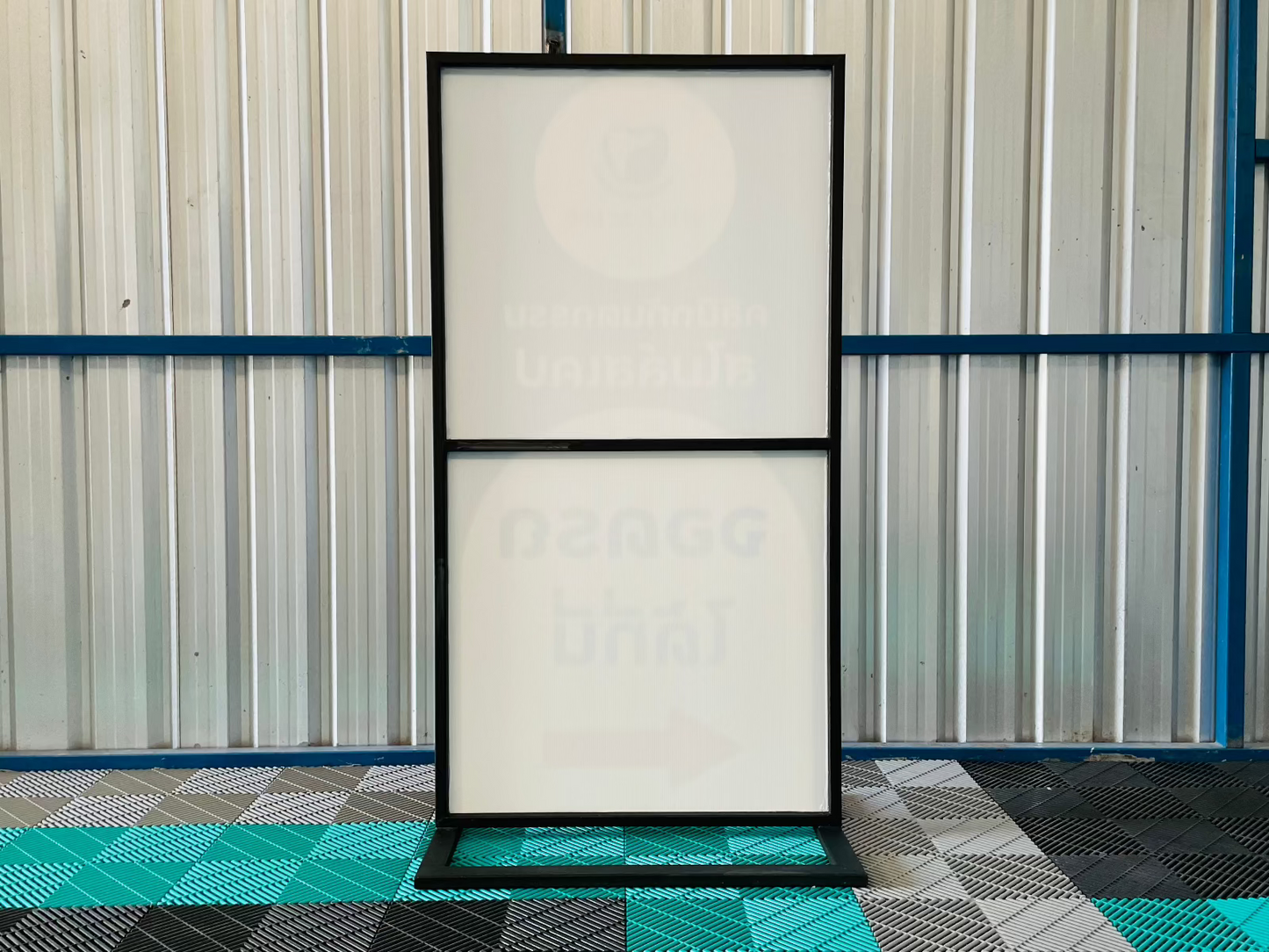 Durable steel-based standee using future board with sticker lamination or UV printing. Perfect as storefront signs, promotional displays, or standing menu boards.