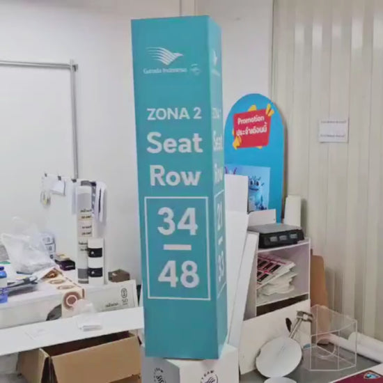 Related keywords: stanchion sleeve, queue barrier sleeve, triangular PP flute sleeve, queue signage, gloss-laminated inkjet, die-cut slot