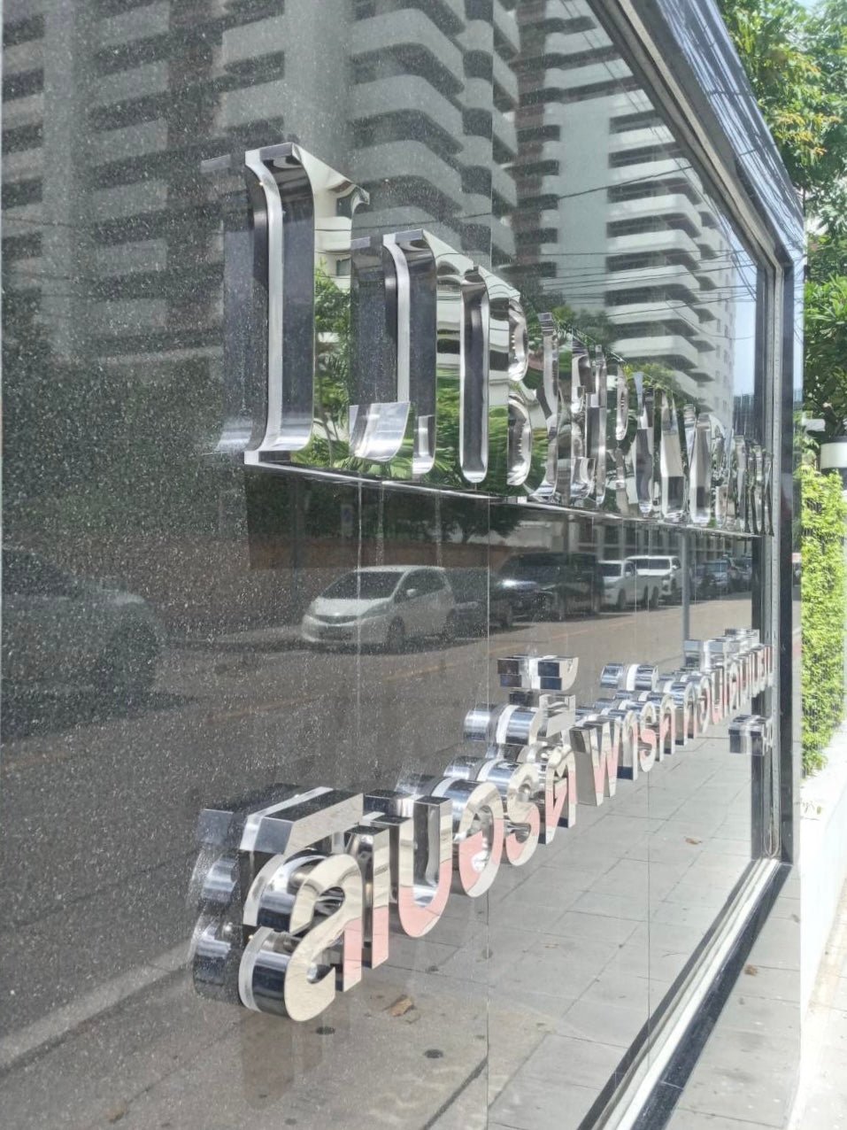 Delivery service for various signs for use in condominium shops nationwide. and Company sign installation service throughout Bangkok and surrounding areas. With a professional team Direct experience in all aspects of the job site Both horizontal and vertical work, all types of commercial work, both inside and outside of business hours.