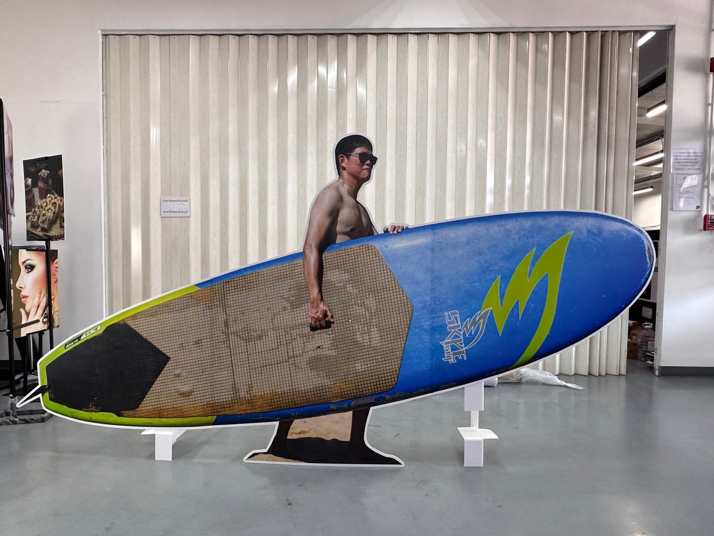 Standee, standee, die-cut standee, cheap standee, human-shaped sign, floor sign, 7-Eleven sign, booth sign, sign with stand