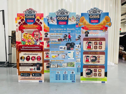 Interested in making standee signs, standee stands, die-cut standee stands, cheap prices, contact Line @octopusdesign for answers or call 081-776-8329.
