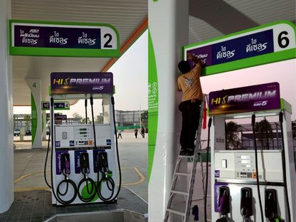 Interested in fuel station graphics, signage, or marketing materials? Message us via LINE @octopusdesign or call 081-776-8329 for a quote or consultation.