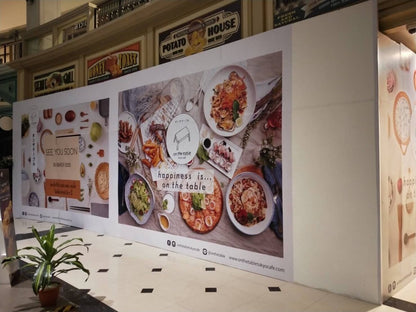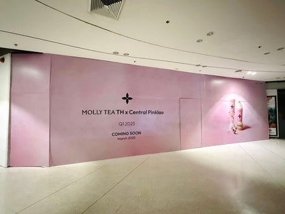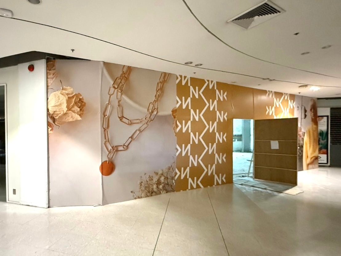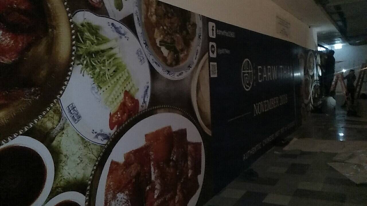 temporary wall stickers Plywood wall sticker, gypsum wall with print advertisement for shop or project. Both indoor and outdoor installations are available.