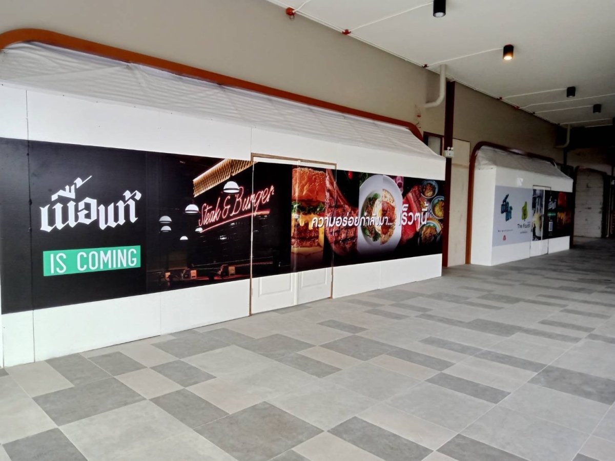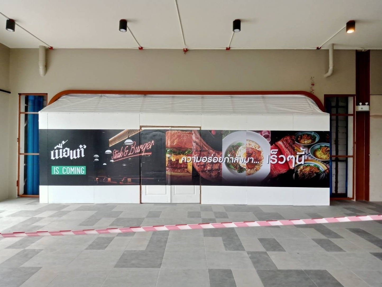 Making signs to close the Hoarding shop in front of the construction site Renovation of stores, making vinyl signs, printing PVC stickers, making stickers Sticker shop, print service, print sticker for making advertising signs in front of the shop. glass stickers while waiting to renovate the shop