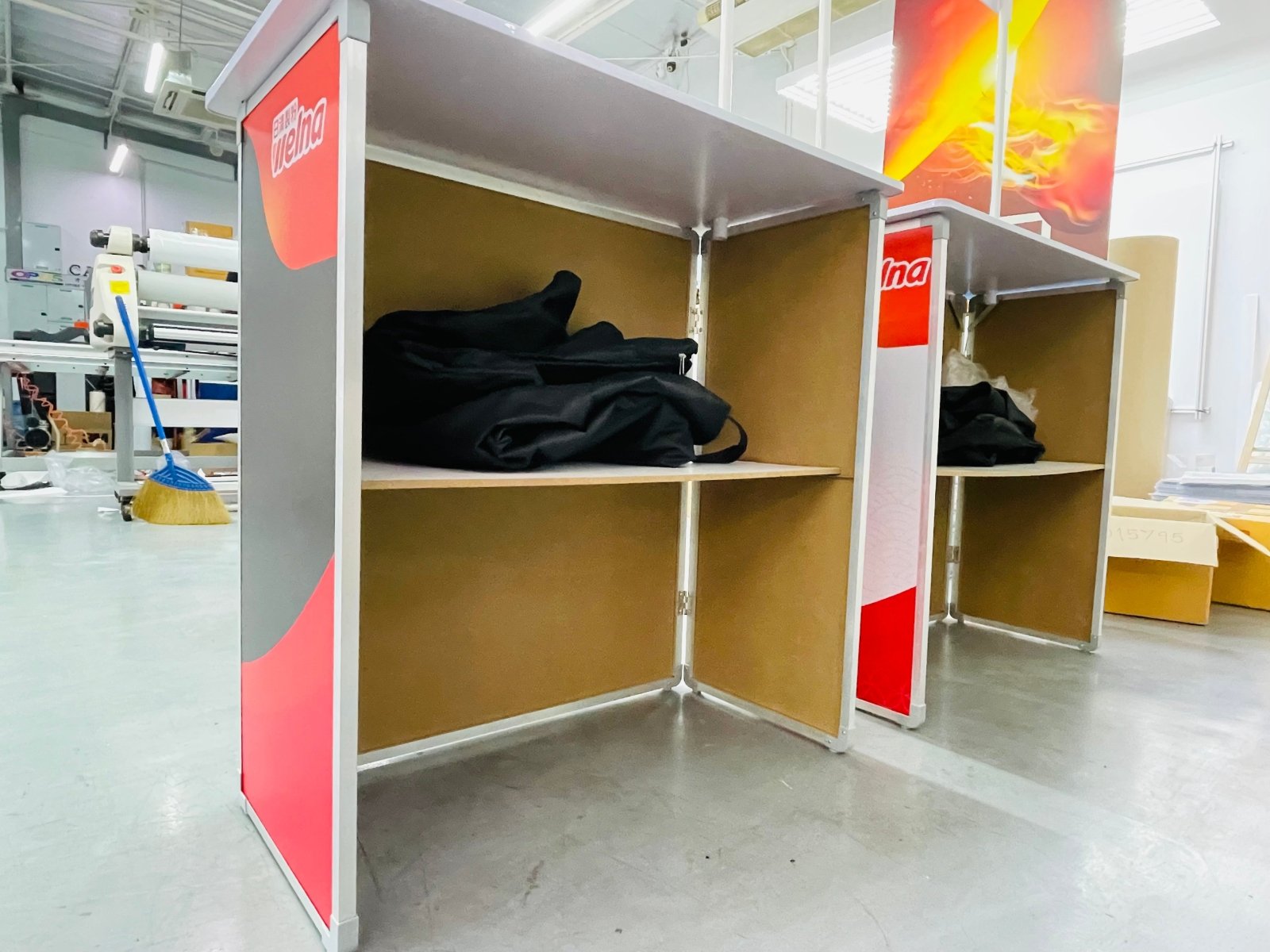 ร้านรับออกแบบ รับทำโต๊ะชวนชิม โต๊ะชงชขิม อุปกรณ์ออกบูธสำเร็จรูป ราคาถูกอุปกรณ์จัดอีเว้นท์ โต๊ะจัดบูธ พร้อมจัดส่ง สื่อส่งเสริมการตลาด