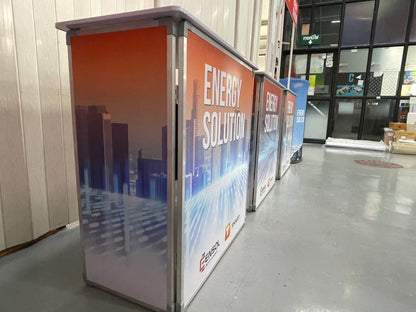 • ป๊อพอัพเค้าเตอร์ (Pop Up Counter) ขอบมน น้ำหนัก 10 kg. ใช้ได้ทั้งการยืนจัดบูธและนั่งจัดบูธ Event ขนาดกระทัดรัด ข้อต่อแข็งแรง ประกอบและพับเก็บง่าย พื้นโต๊ะพับได้ ประหยัดพื้อนที่จัดเก็บ วัสดุรอบโต๊ะทำจากแผ่น Flexi-Polycarbonate หนาทน ม้วนเก็บสะดวก