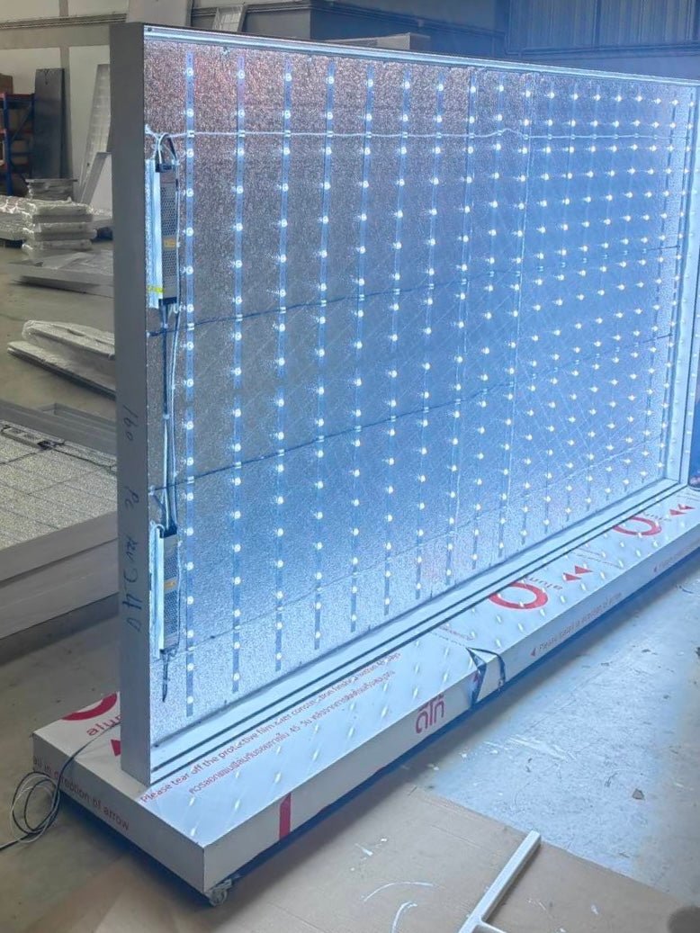 - Backdrop กล่องไฟ ขึงผ้าสไตล์ Stretching Fabric ที่ให้ลุคดูดีพรีเมี่ยมกว่าป้ายไฟไวนิลทั่วไป