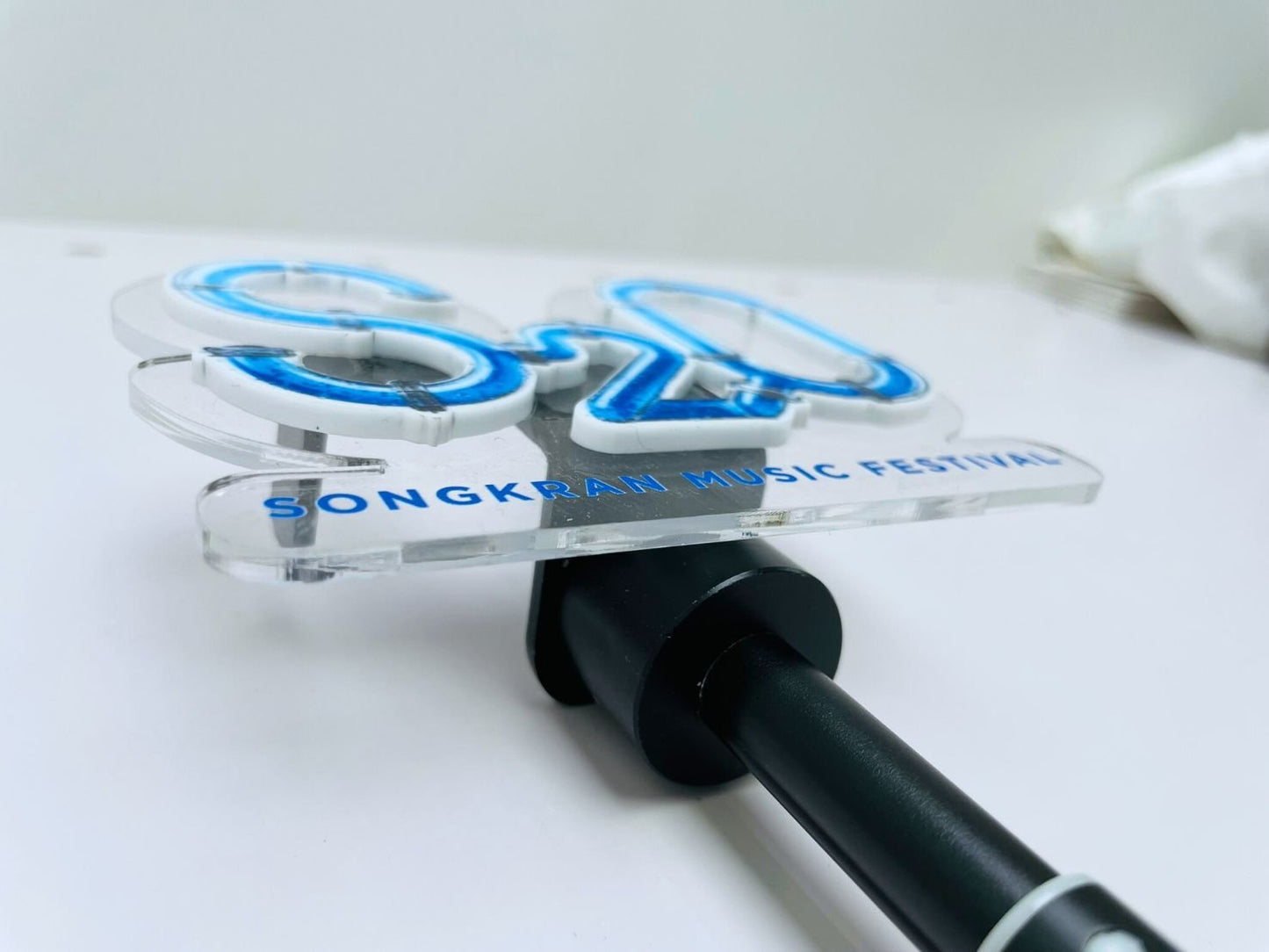 ทำป้ายไมค์สัมภาษณ์พร้อมเพลทโลโก้ ป้ายหัวไมค์พร้อมด้ามจับ ป้ายไมค์พร้อมจัดส่ง วัสดุอะคริลิกหลายความหนา อะคริลิกไดคัทตัวอักษร อะคริลิกติดสติ๊กเกอร์