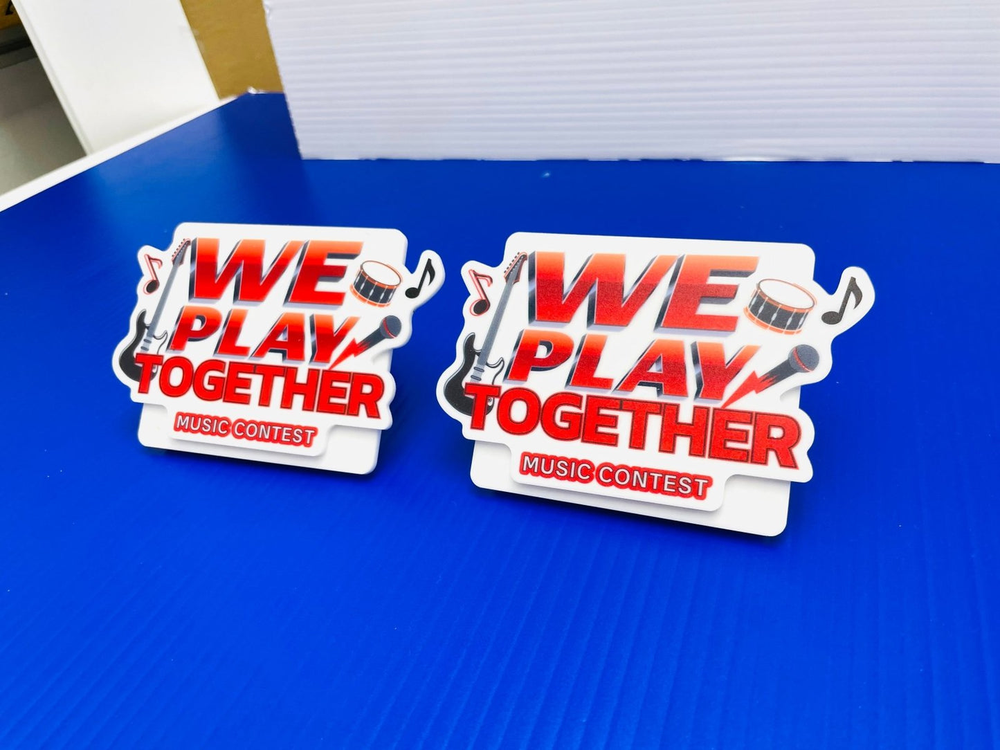 • ป้ายหัวไมค์อะคริลิกติดสติ๊กเกอร์