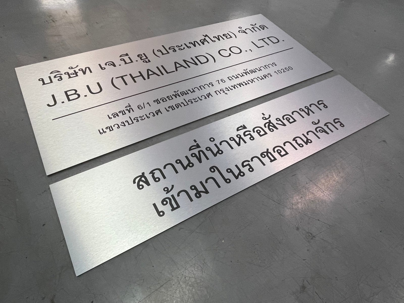 ทำป้ายชื่อบริษัทด้วยวัสดุคุณภาพ ไวนิล สติ๊กเกอร์ พลาสวูด อะคริลิค ซิงค์ สแตนเลส อลูมิเนียม เนื้อดี เชื่อมประกอบเนี้ยบ ทำป้ายพ่นสีอุตสาหกรรมหรือสี 2K สีอบ สีฝุ่น Powder Coat มั่นใจความเนี้ยบและคุณภาพ