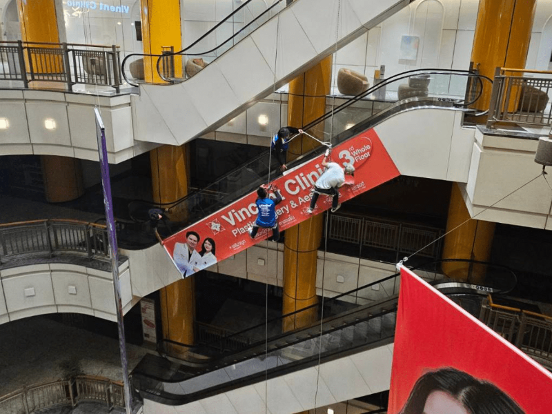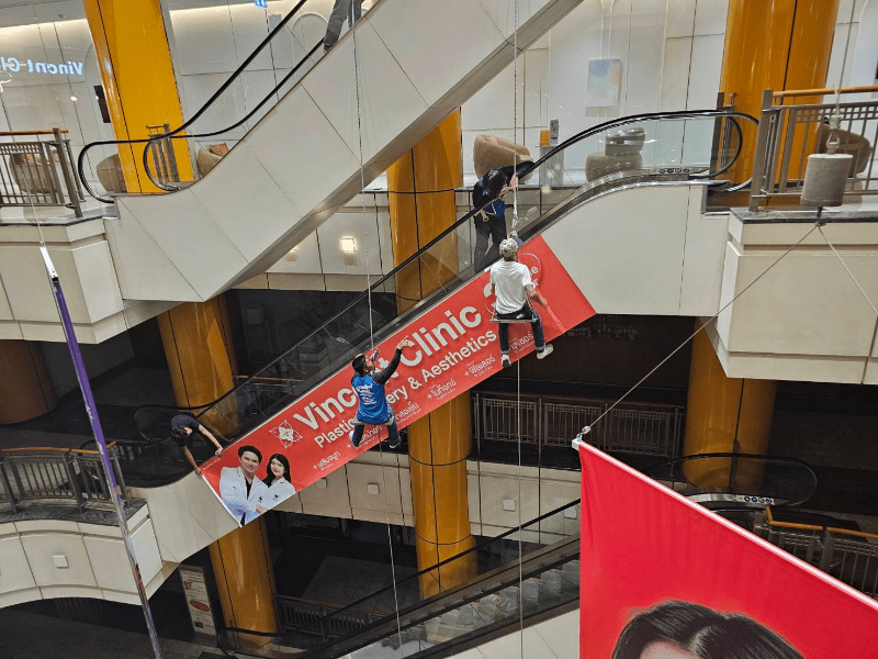 ทีมติดตั้งจะเข้าทำงานในช่วงเวลาที่ไม่รบกวนลูกค้า เช่น หลังห้างปิดหรือช่วงเช้าก่อนเปิดบริการ พร้อมใช้อุปกรณ์ความปลอดภัยเต็มรูปแบบและเทคนิคการวางตำแหน่งเพื่อให้ผลงานตรงตามแบบ