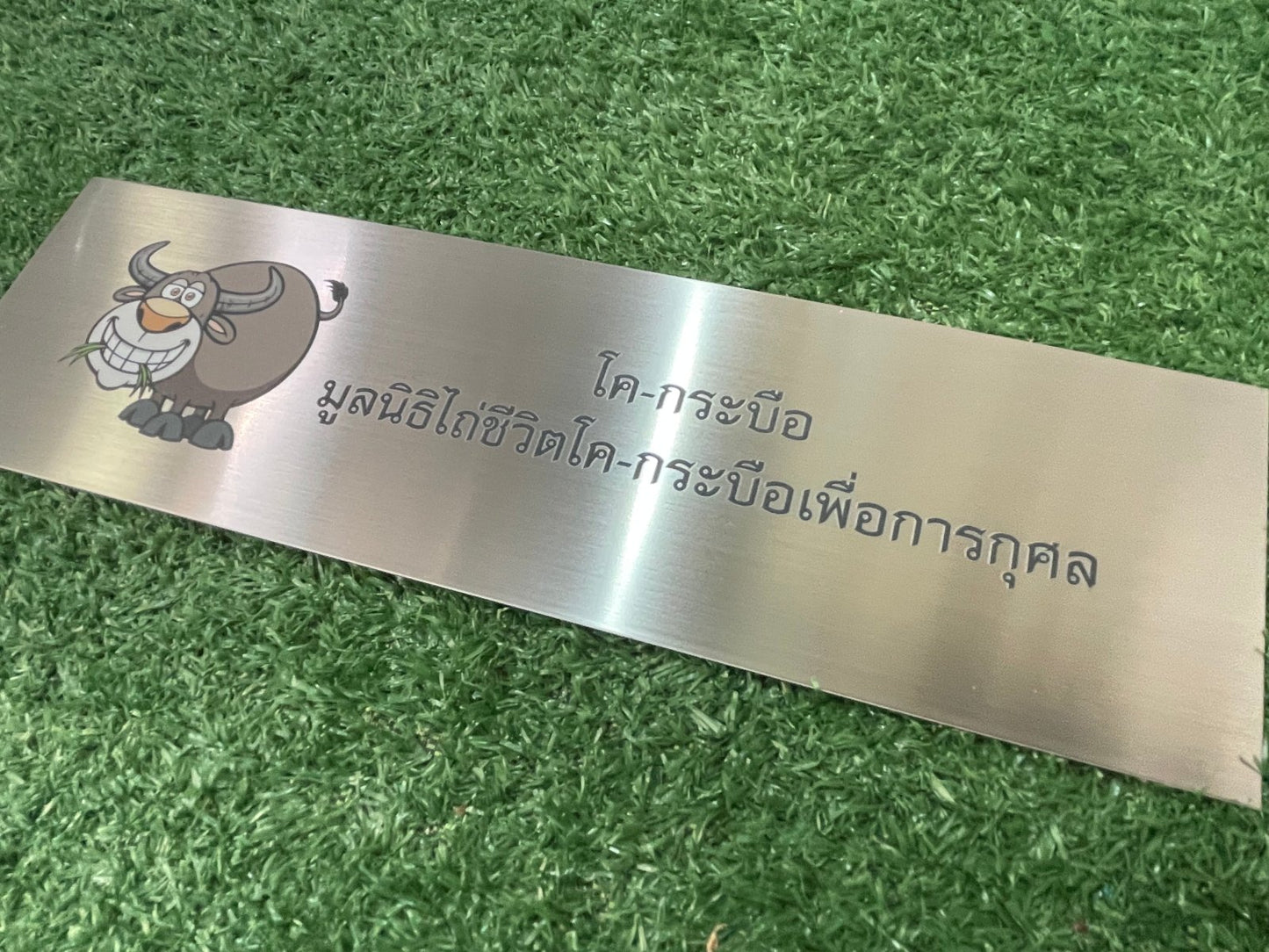 - ป้ายติดมูลนิธิ อักษรอลูมิเนียม มีน้ำหนักเบา ทนทานต่อการผุกร่อน ทนทานต่อสภาพอากาศไม่เป็นสนิม