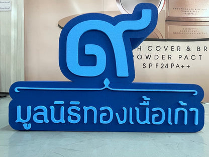 - ป้ายโลโก้มูลนิธิ ตัวอักษรพลาสวูดรองหลัง เป็นวัสดุที่ใช้ทดแทนไม้ ไม่เป็นเชื้อไฟ ไม่ดูดซึมความชื้น ไม่บวมน้ำ ทนทานต่อสภาพแวดล้อมกลางแจ้ง เบิ้ลรองหลังให้ไฟฟุ้งออกหลังได้ แม้ติดตั้งยกลอย