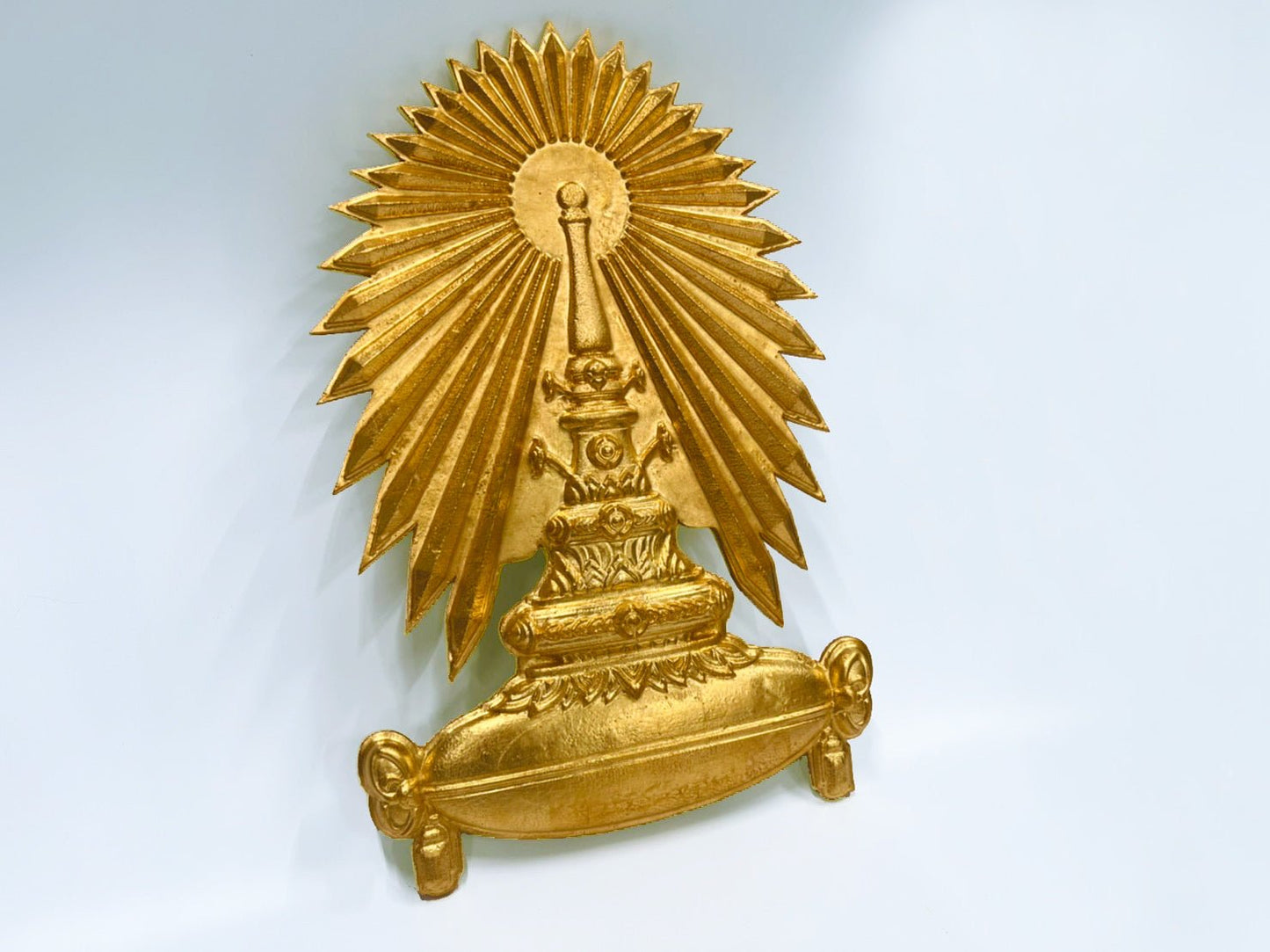 รับผลิตป้ายโลโก้ตราสัญลักษณ์จากไฟเบอร์กลาส ดำเนินการตั้งแต่งานปั้นโมลด์ แกะสลักลายตามแบบที่ต้องการ หล่อขึ้นรูป ลงสี ปิดทองทำเปลว สเปคทองแท้ หรือทองวิทยาศาสตร์ตามงบประมาณ