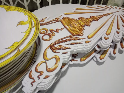 - ซุ้มช่อถนนเฉลิมพระเกียรติ มีตั้งแต่ขนาดเล็กจนถึงขนาดใหญ่ นิยมใช้แผ่นพลาสวูดและติดตั้งไฟเข้าไปด้วย ใชช้สำำหรับใส่ชชื่อหน่วยงานและติดตั้งบริเวณถนนและสถถานที่ต่าง ๆ