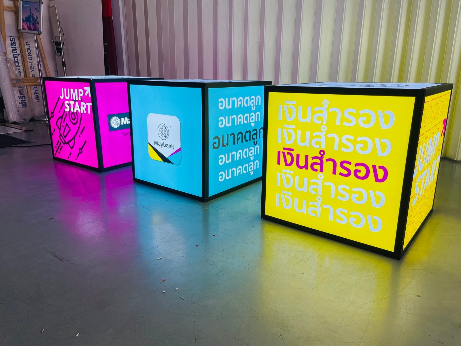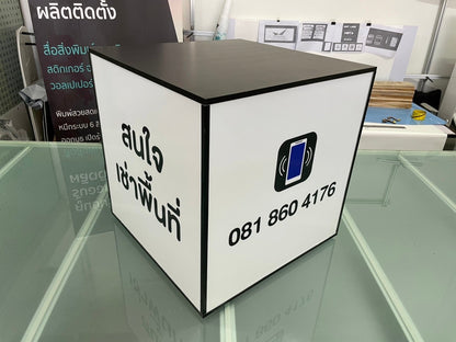 รับทำกล่องไฟ Cubic กล่องไฟสี่เหลี่ยม ทรงลูกเต๋า ป้ายไฟ กล่องตั้งพื้น สำหรับใช้งานทั้งภายนอกภายใน ตู้ไฟสี่เหลี่ยม กล่องไฟอะคริลิค กล่องไฟออกรอบด้าน