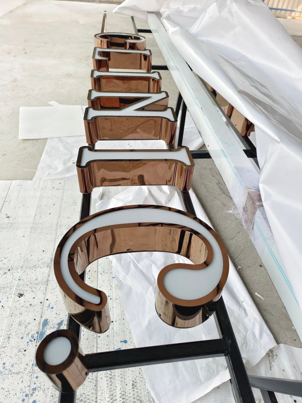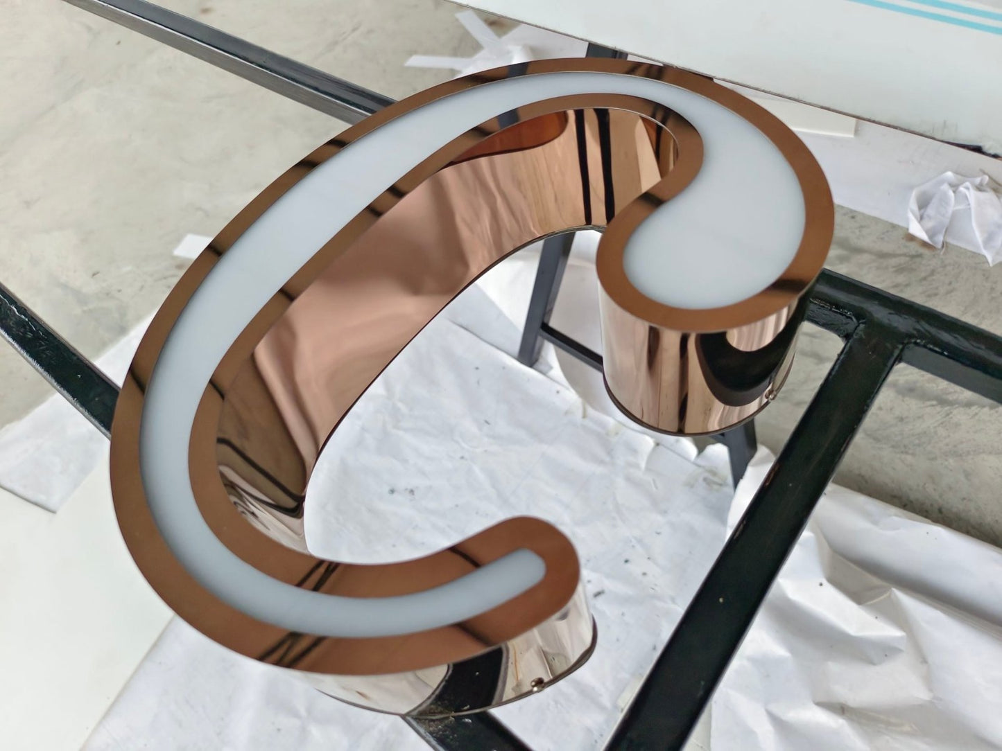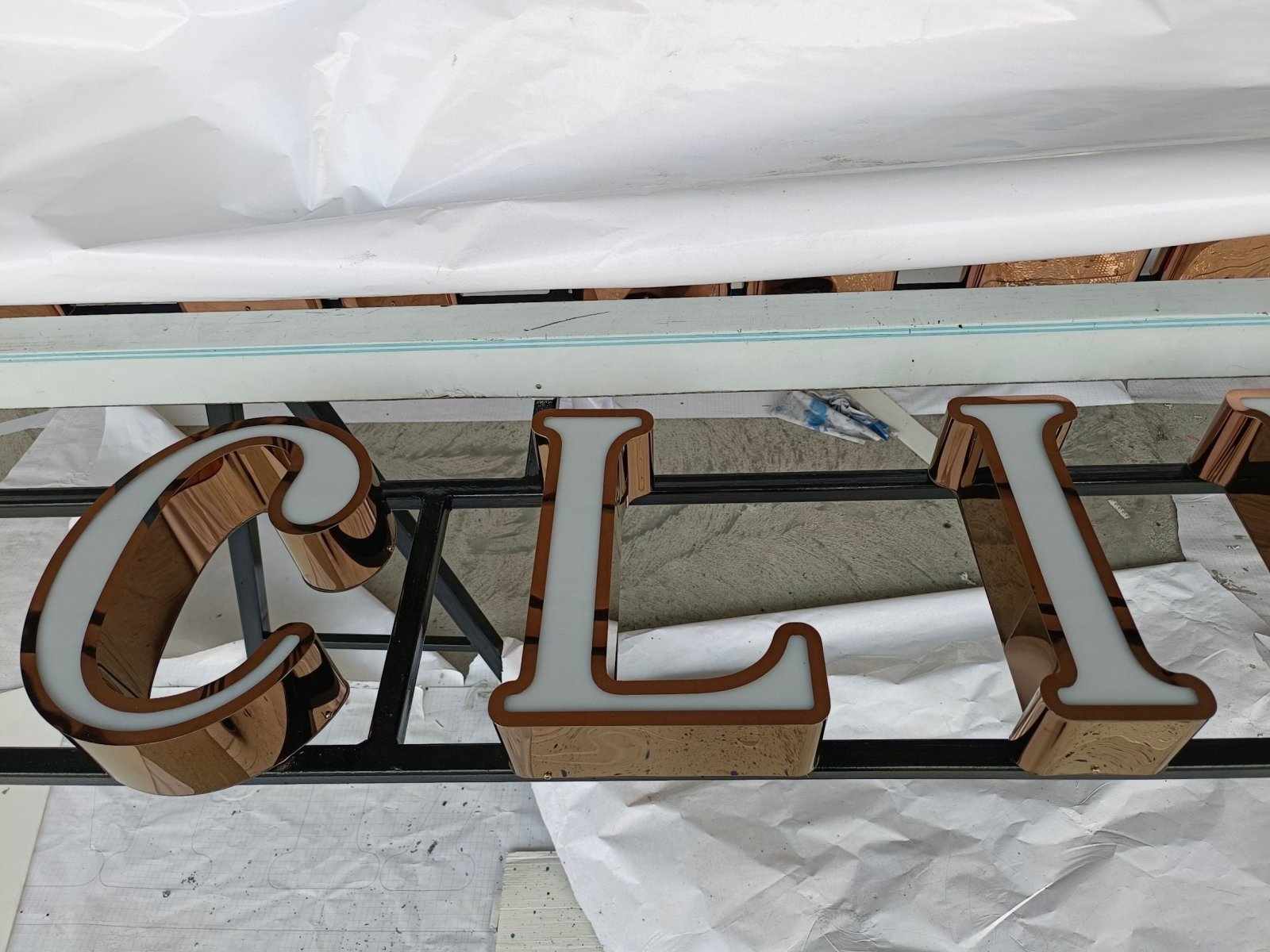 รับทำป้ายสแตนเลส คอปเปอร์ มิลเรอร์ / ทองแดง เงา / Copper Mirror ป้ายบริษัท ป้ายโลโก้สแตนเลส ตัวอักษรสแตนเลส ป้ายสแตนเลสกัดกรด สแตนเลสไดคัท ป้ายไฟสแตนเลส