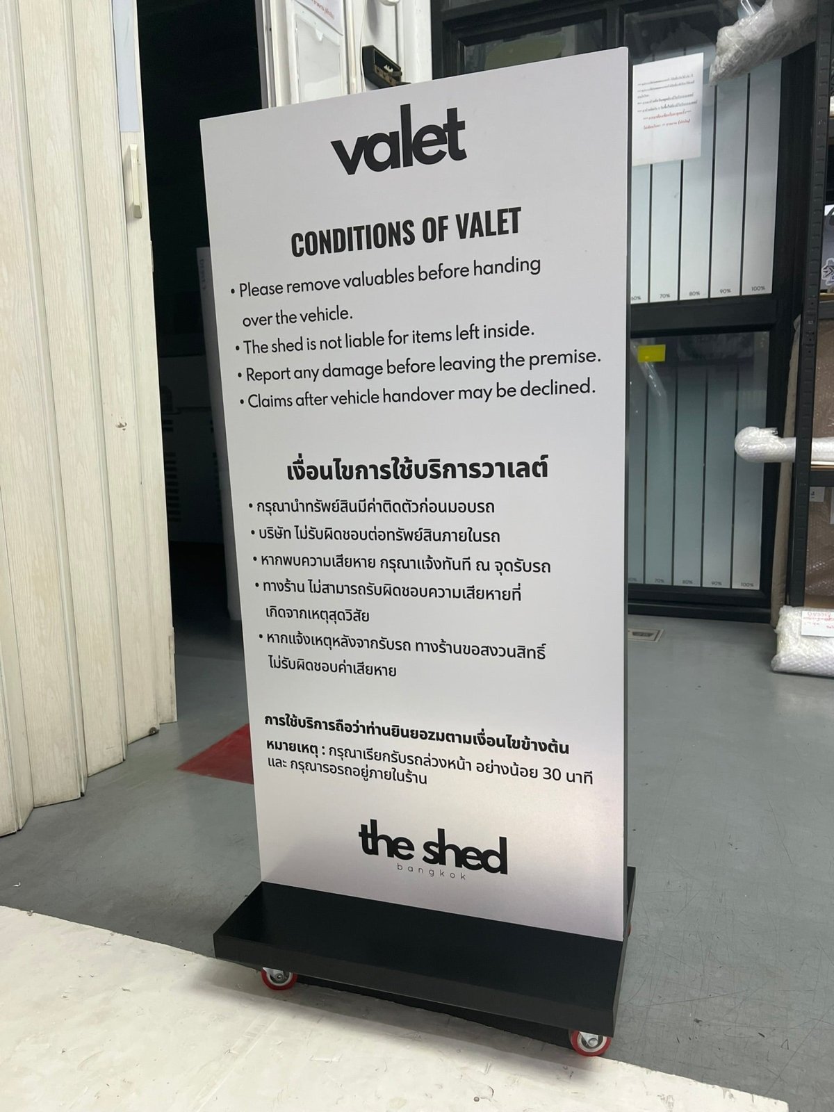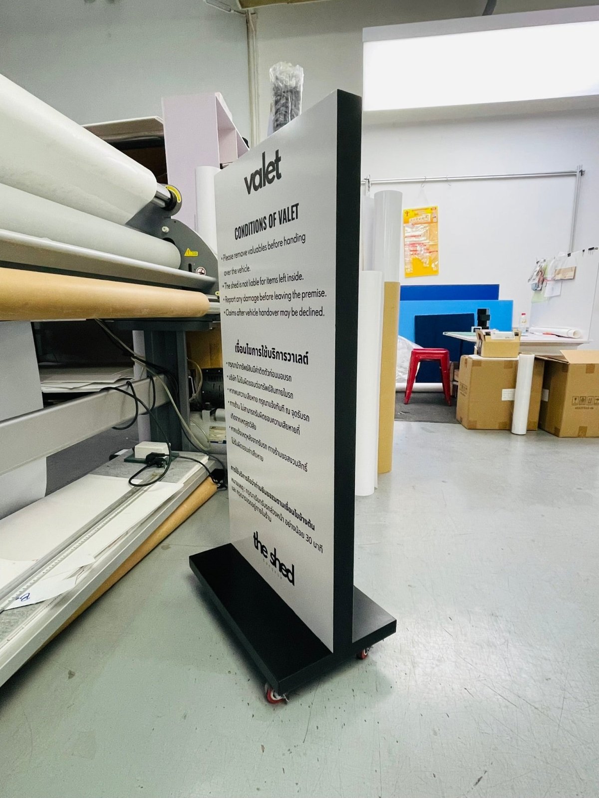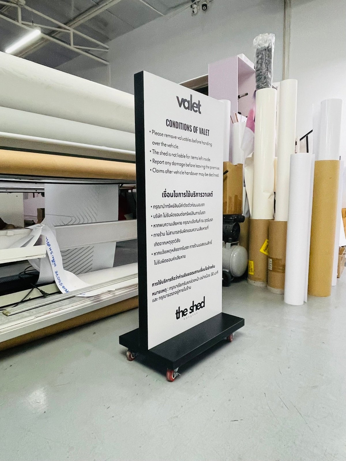 ป้ายล้อเลื่อนเหมาะสำหรับใช้งานเป็นป้ายหน้าร้าน ป้ายแจ้งเงื่อนไขการใช้บริการ ป้ายข้อมูลสำหรับลูกค้า หรือป้ายประชาสัมพันธ์ชั่วคราวในพื้นที่ที่ไม่สะดวกติดตั้งป้ายถาวร รูปแบบตั้งพื้นทำให้มองเห็นชัดจากระดับสายตา และสามารถปรับตำแหน่งให้เหมาะกับการใช้งานจริงในแต่ละช่วงเวลาได้
