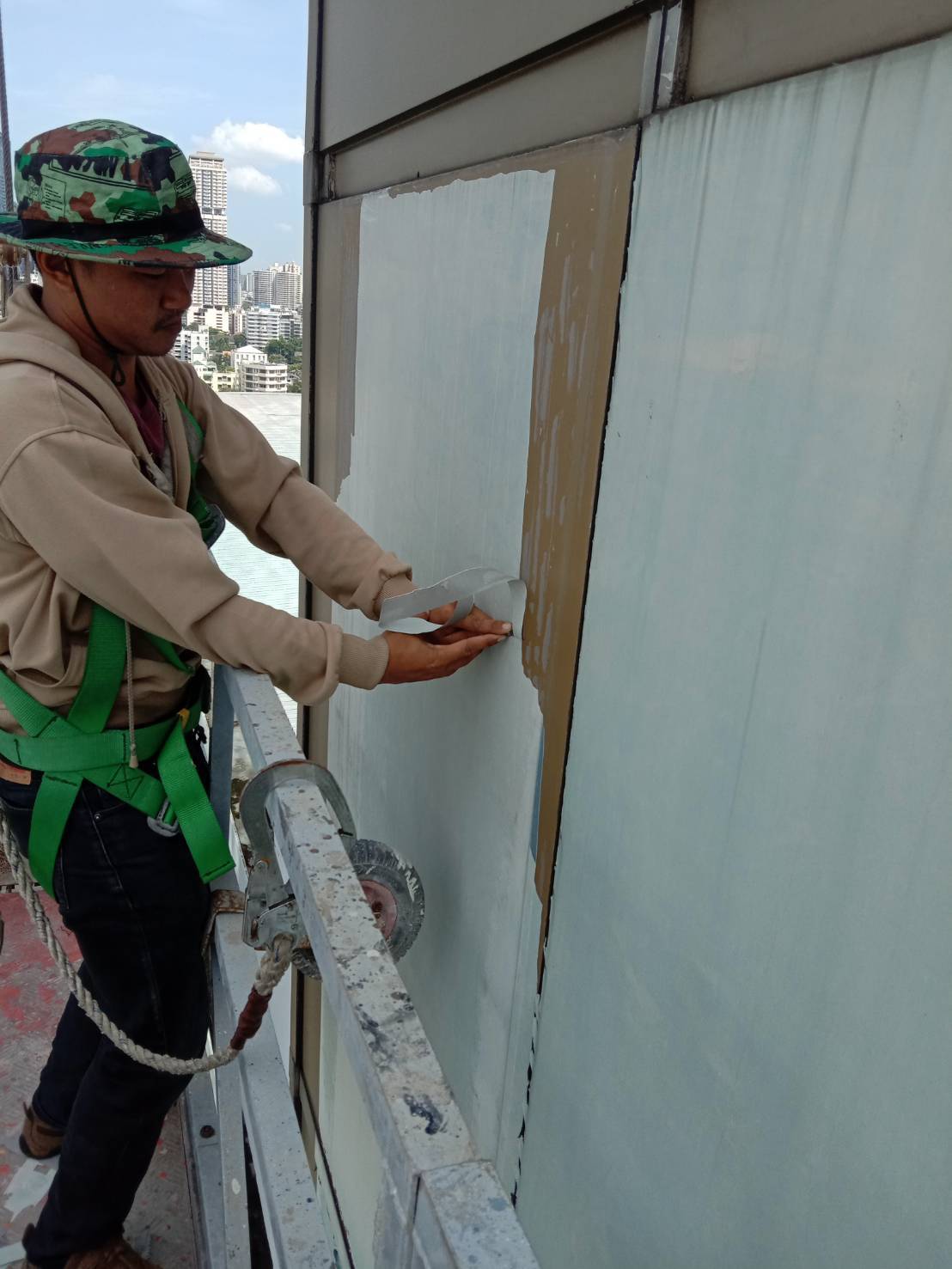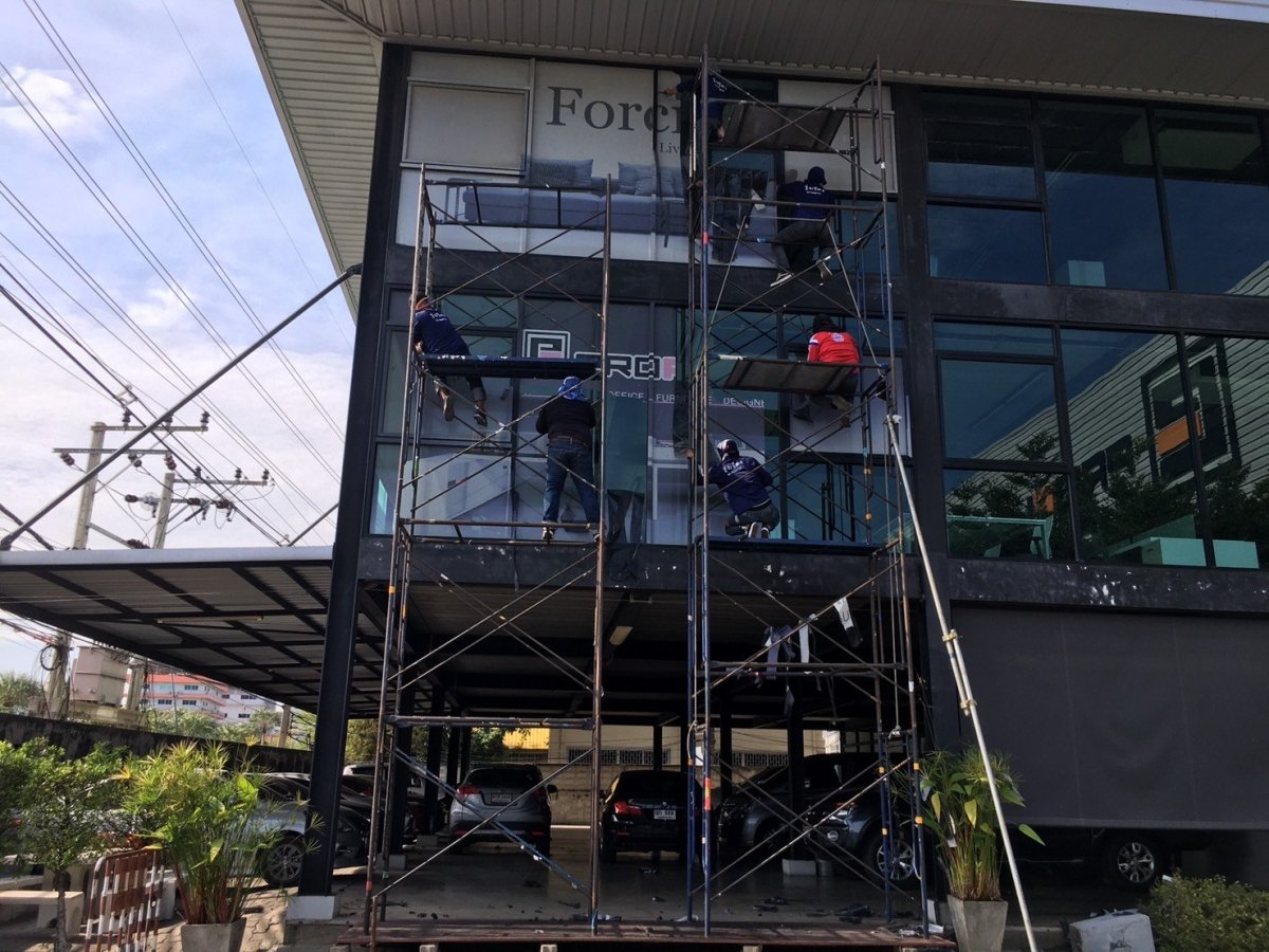 - ลอกสติ๊กเกอร์อาคารสูง ทำความสะอาด ติดตั้งใหม่