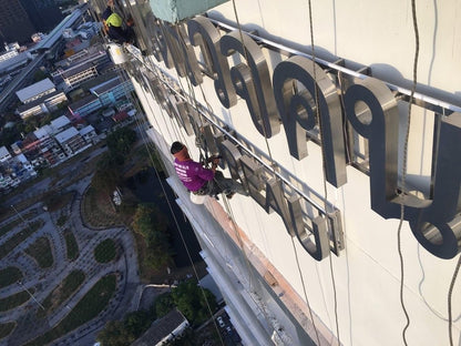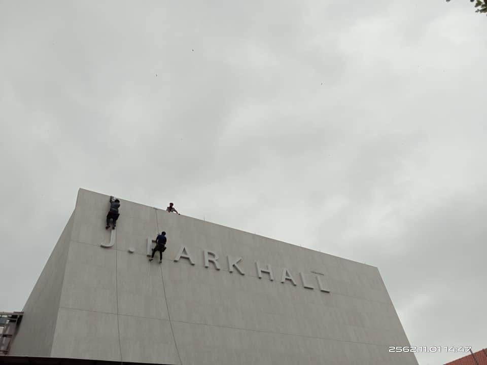 - งานตั้งป้ายโลโก้ ป้ายอักษร ตราสัญลักษณ์ ป้ายไฟเบอร์กลาส ติดตั้งป้ายบนตึกสูง