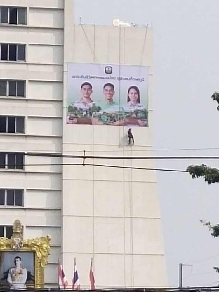 รับบริการลอกสติ๊กเกอร์ รับติดสติ๊กเกอร์โฆษณาอาคารสูง (Building Wrap) ทำป้ายพร้อมติดตั้งป้ายบนอาคารสูง ผนังอาคารหรือกระจกอาคาร สติ๊กเกอร์ซีทรูรูปพระบรมฉายาลักษณ์ สติ๊กเกอร์ซีทรูโฆษณาขนาดใหญ่ ติดป้ายโลโก้ ติดตั้งตราสัญลักษณ์ ด้วยทีมช่างมากประสบการณ์ ปลอดภัย มีระบบ Safety ติดตั้งป้ายบนที่สูงด้วยนั่งร้าน กอนโดล่า เครน โรยตัว หลากหลายเทคนิคตามความเหมาะสมหน้างาน