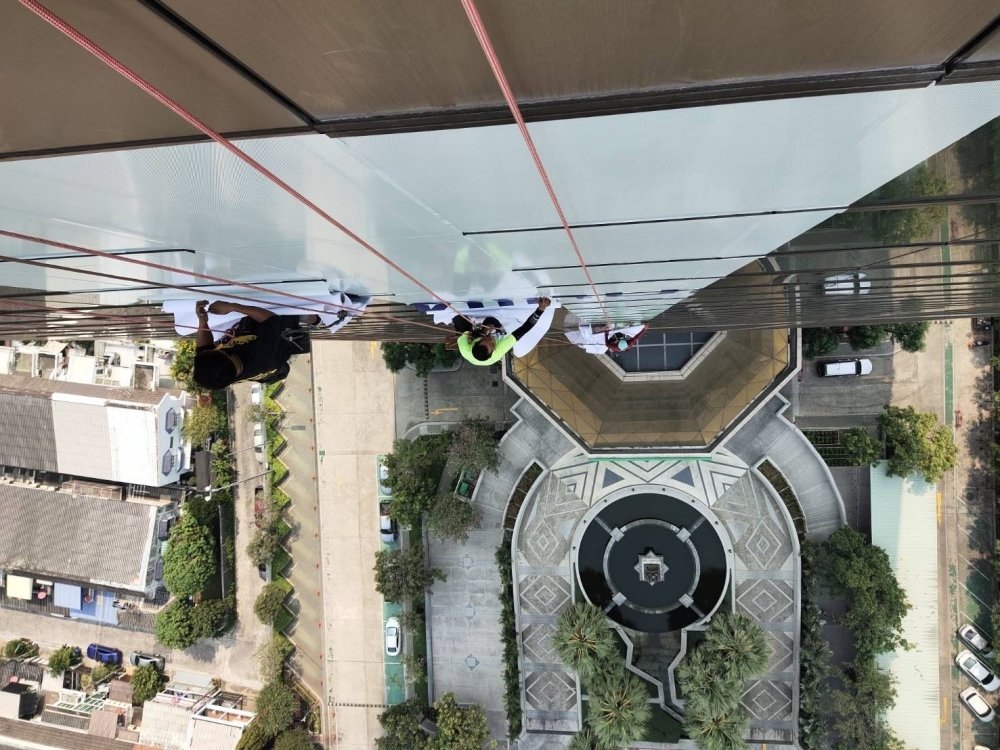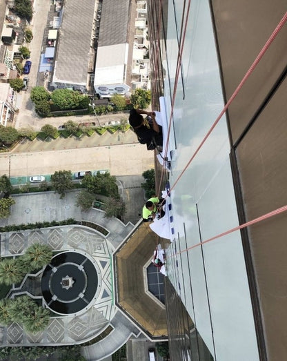 - ลอกสติ๊กเกอร์ซีทรูติดกระจก อาคารสูง ทำความสะอาด ติดตั้งใหม่