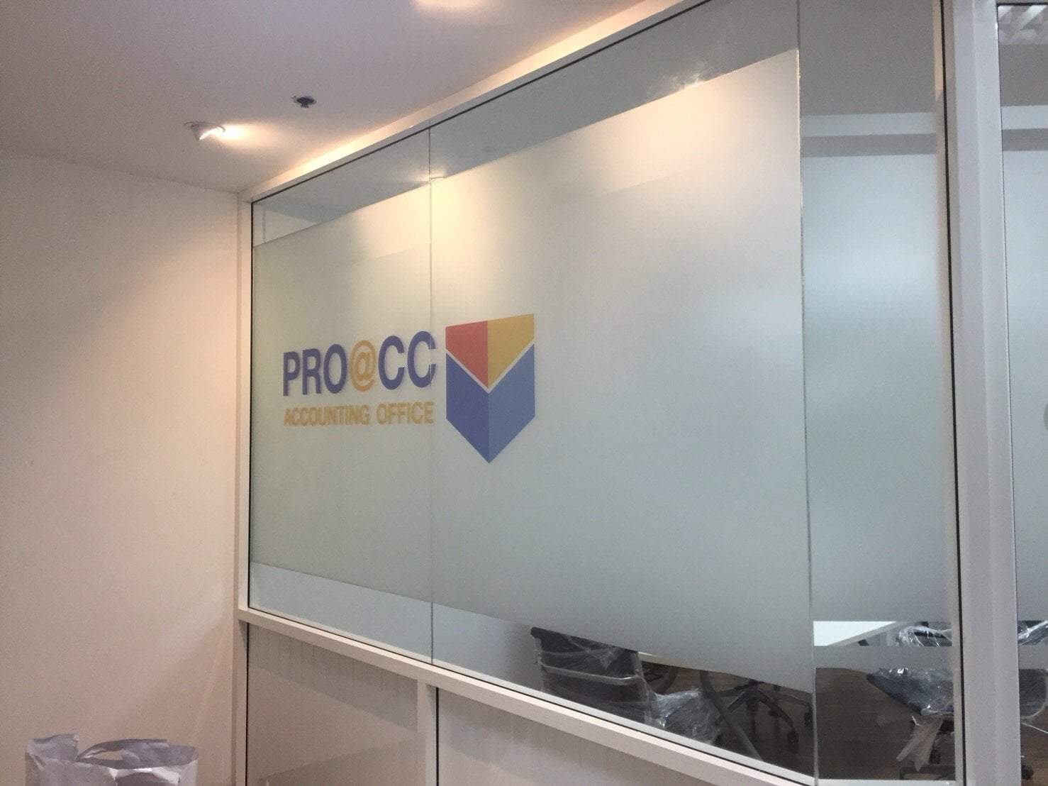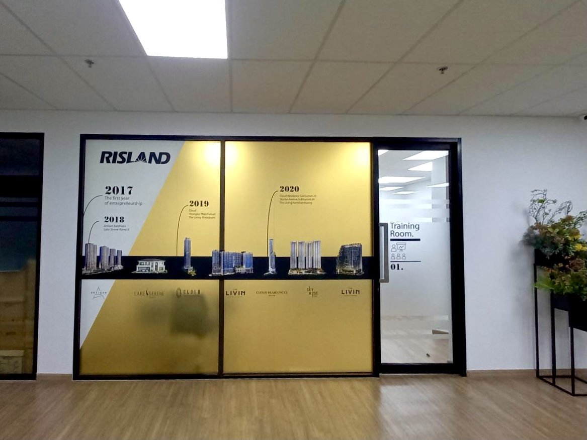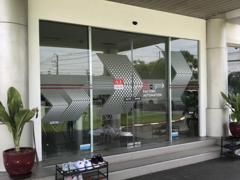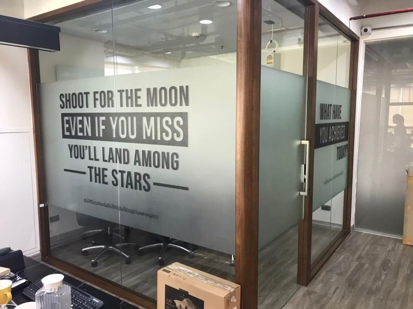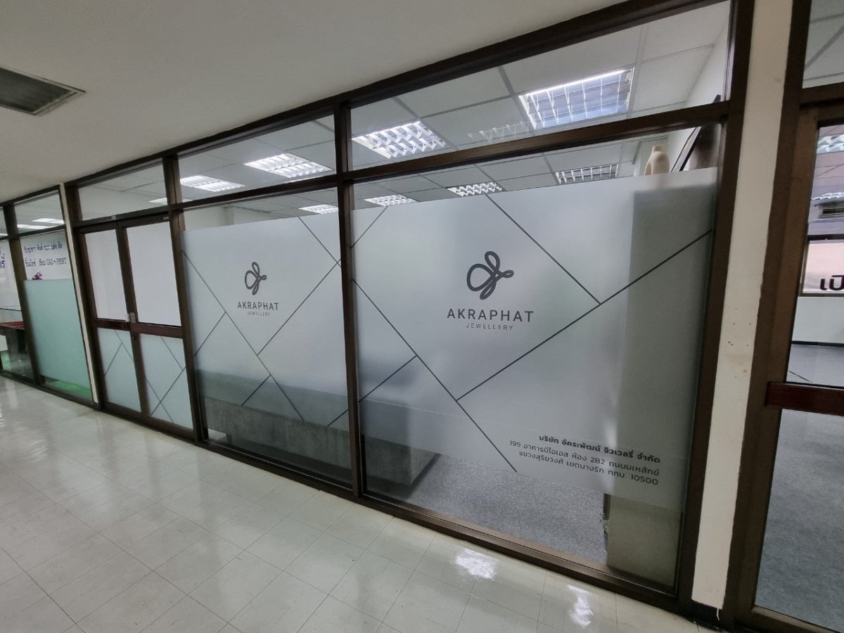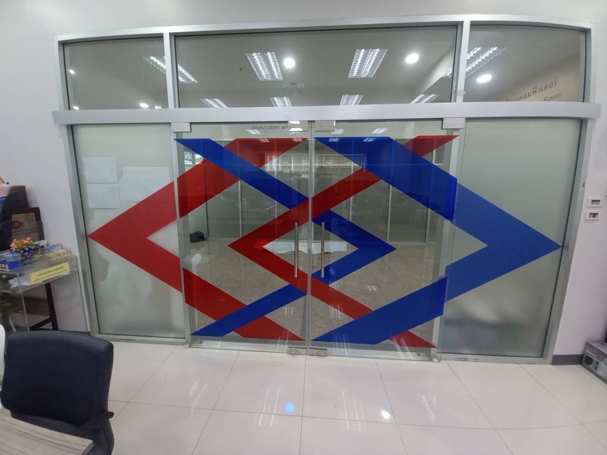 • สติ๊กเกอร์ฝ้าไดคัท สติ๊กเกอร์ฝ้าพิมพ์ลาย ไดคัทเป็นโลโก้องค์กร สติ๊กเกอร์ได้คัทลายตกแต่งออฟิศ ช่วยเพิ่มความสวยงามให้แก่ออฟฟิศ