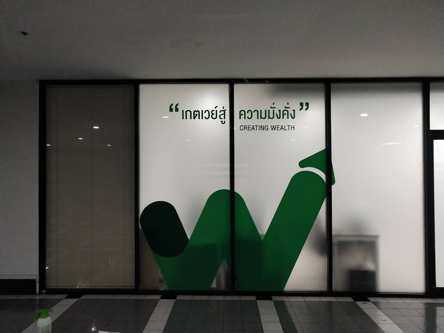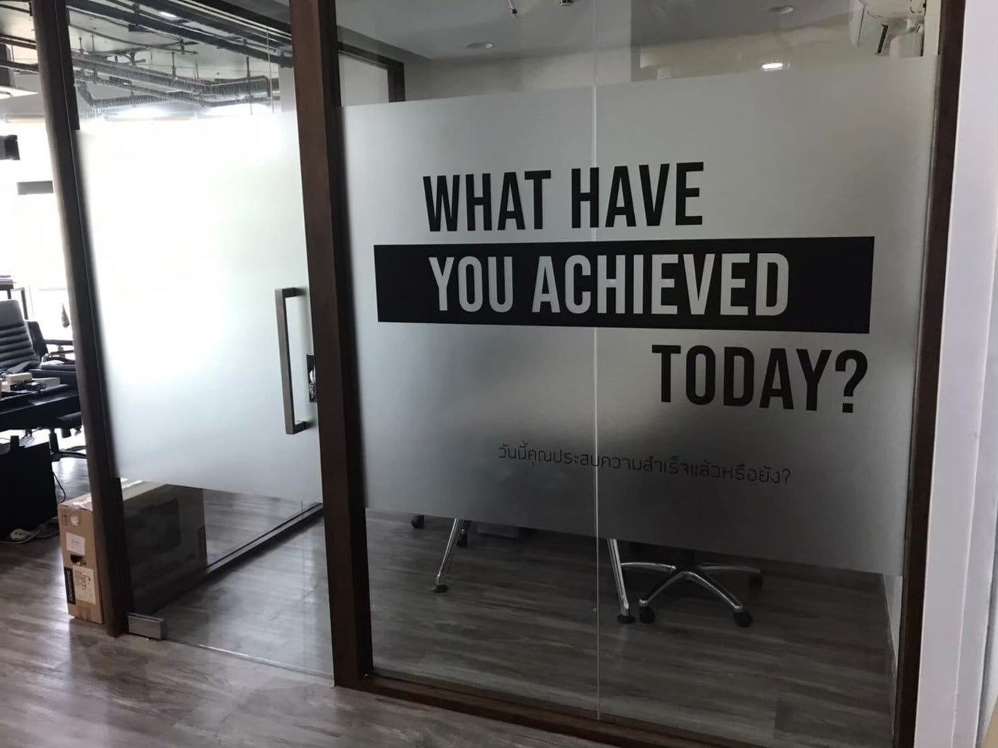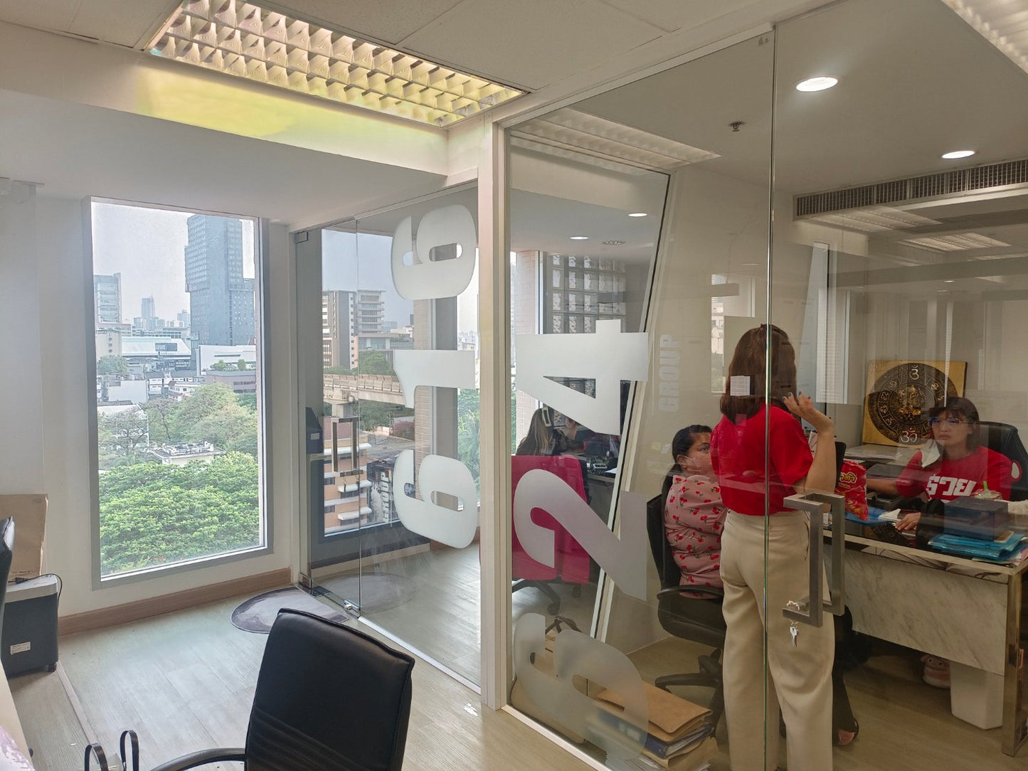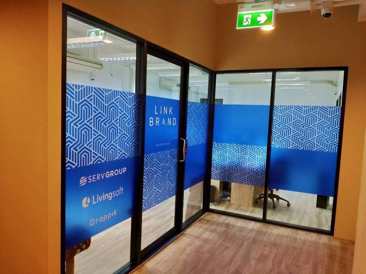 • สติ๊กเกอร์ฝ้าไดคัท สติ๊กเกอร์ฝ้าพิมพ์ลาย ไดคัทเป็นโลโก้องค์กร สติ๊กเกอร์ได้คัทลายตกแต่งออฟิศ ช่วยเพิ่มความสวยงามให้แก่ออฟฟิศ