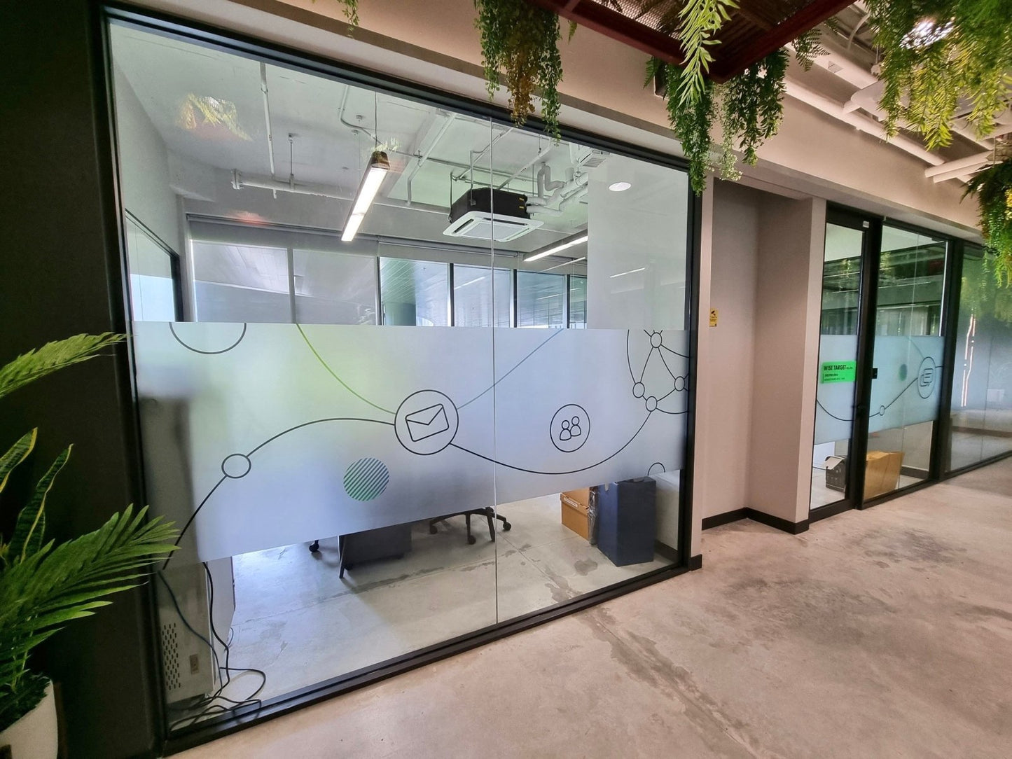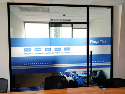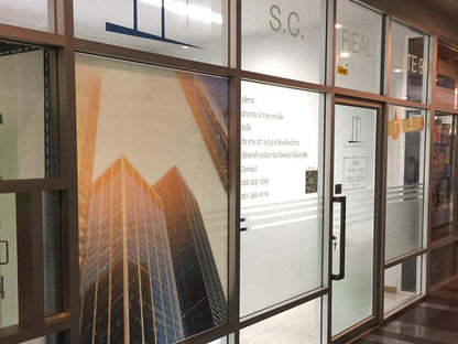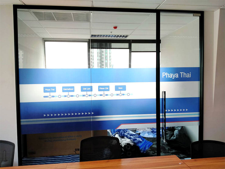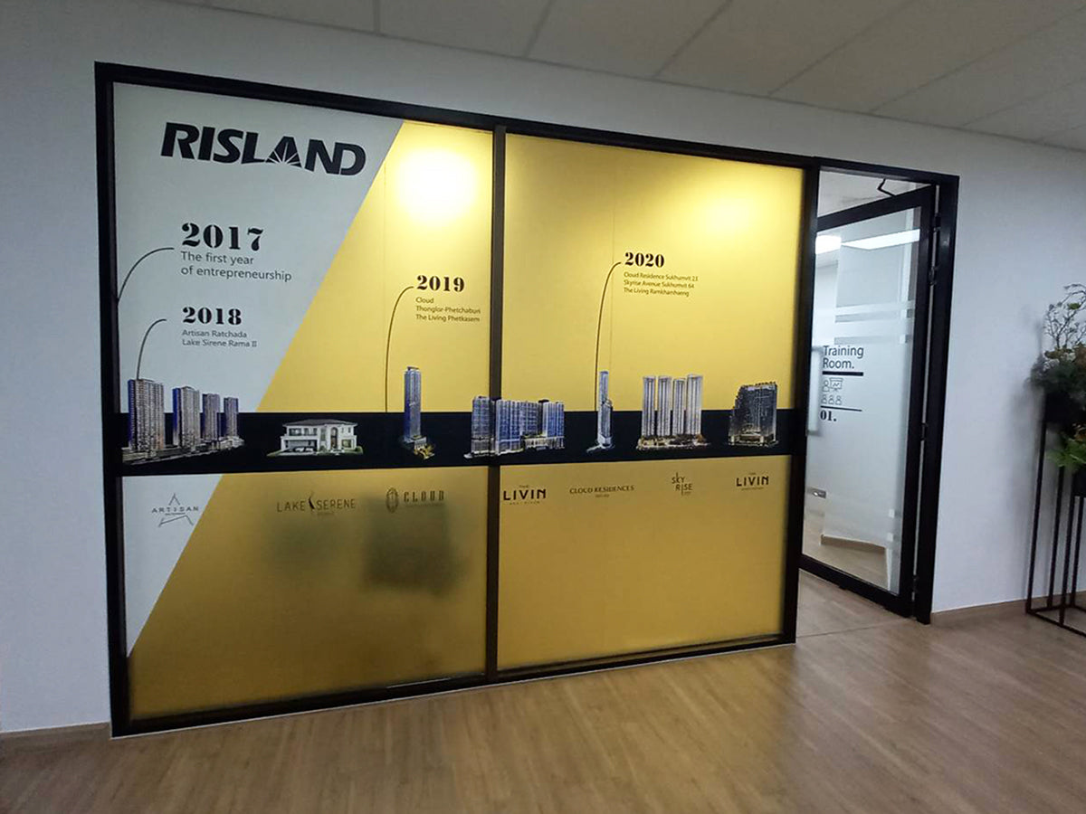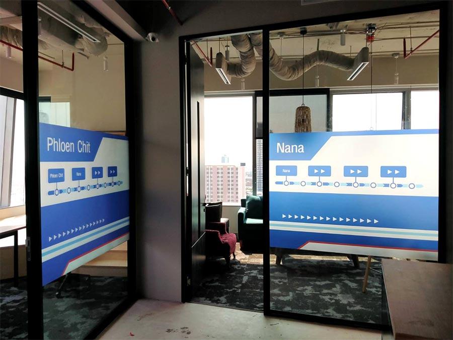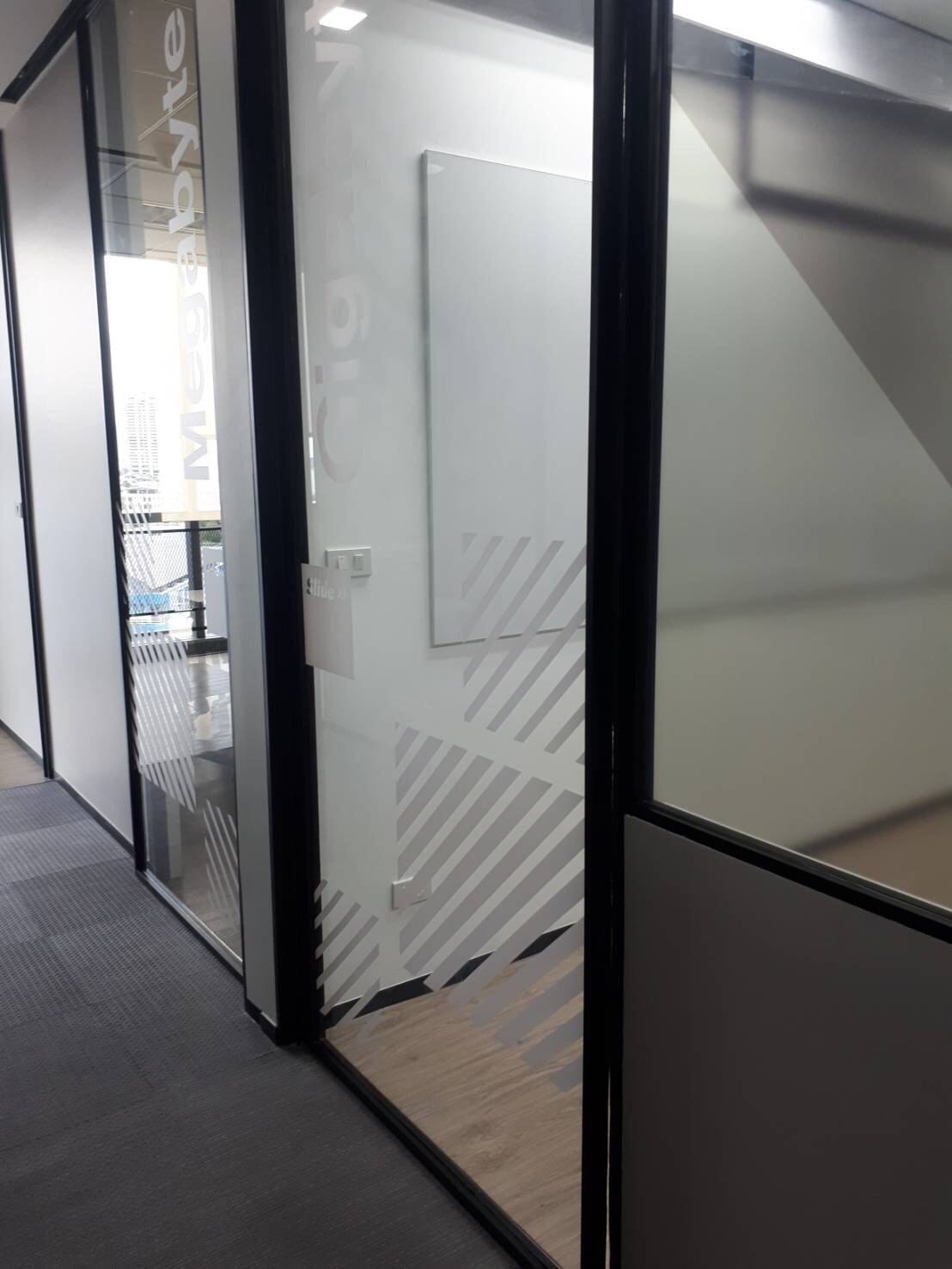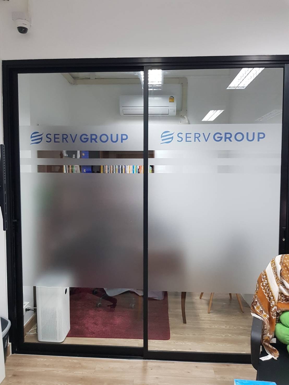 • สติ๊กเกอร์ฝ้าไดคัท สติ๊กเกอร์ฝ้าพิมพ์ลาย ไดคัทเป็นโลโก้องค์กร สติ๊กเกอร์ได้คัทลายตกแต่งออฟิศ ช่วยเพิ่มความสวยงามให้แก่ออฟฟิศ