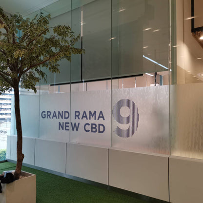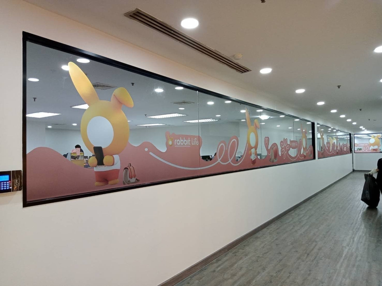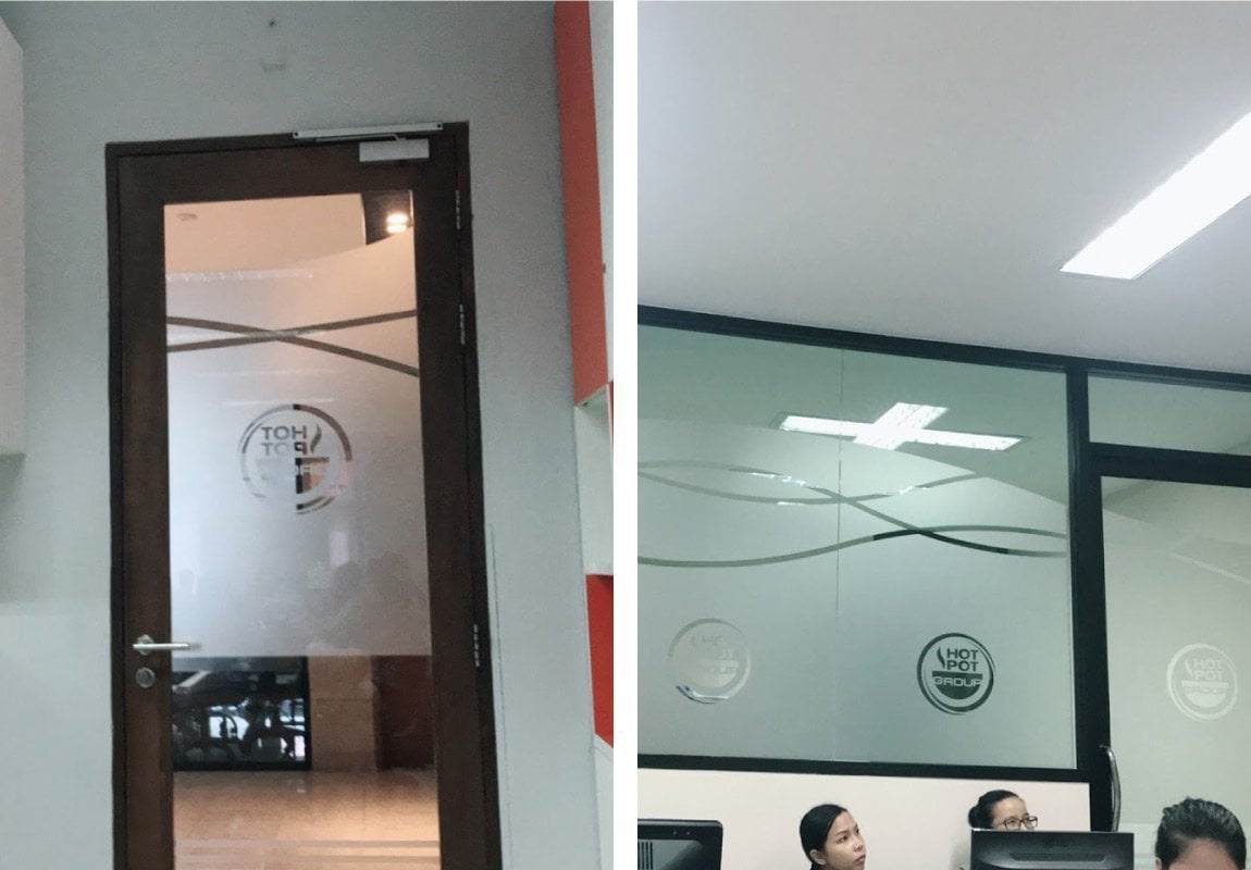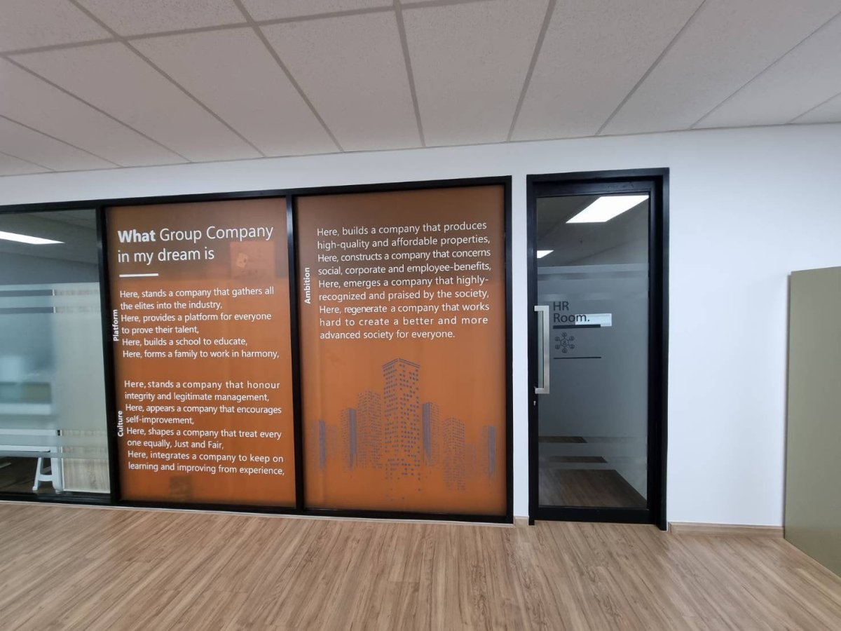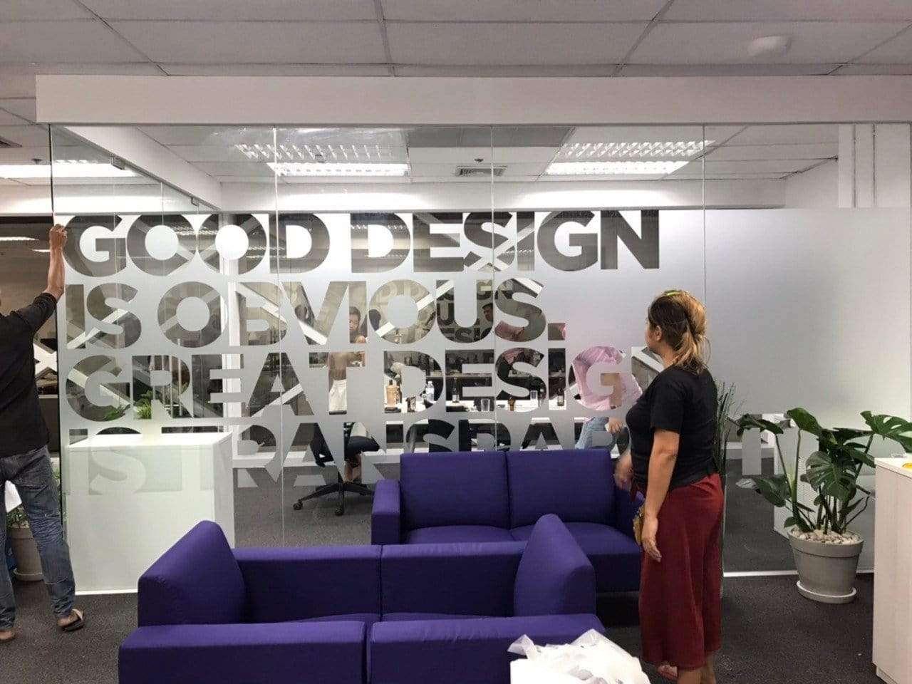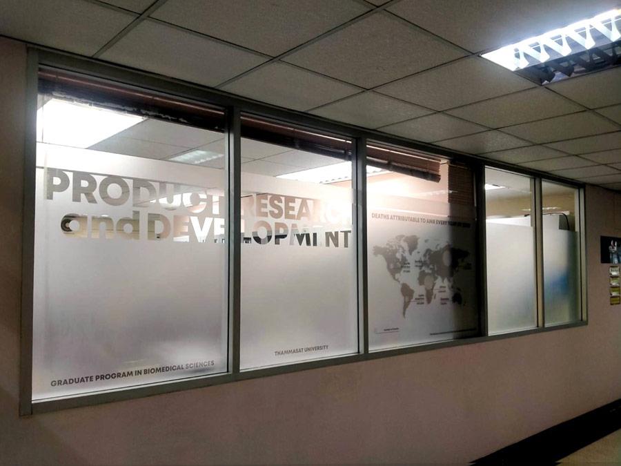 • สติ๊กเกอร์ฝ้าไดคัท สติ๊กเกอร์ฝ้าพิมพ์ลาย ไดคัทเป็นโลโก้องค์กร สติ๊กเกอร์ได้คัทลายตกแต่งออฟิศ ช่วยเพิ่มความสวยงามให้แก่ออฟฟิศ