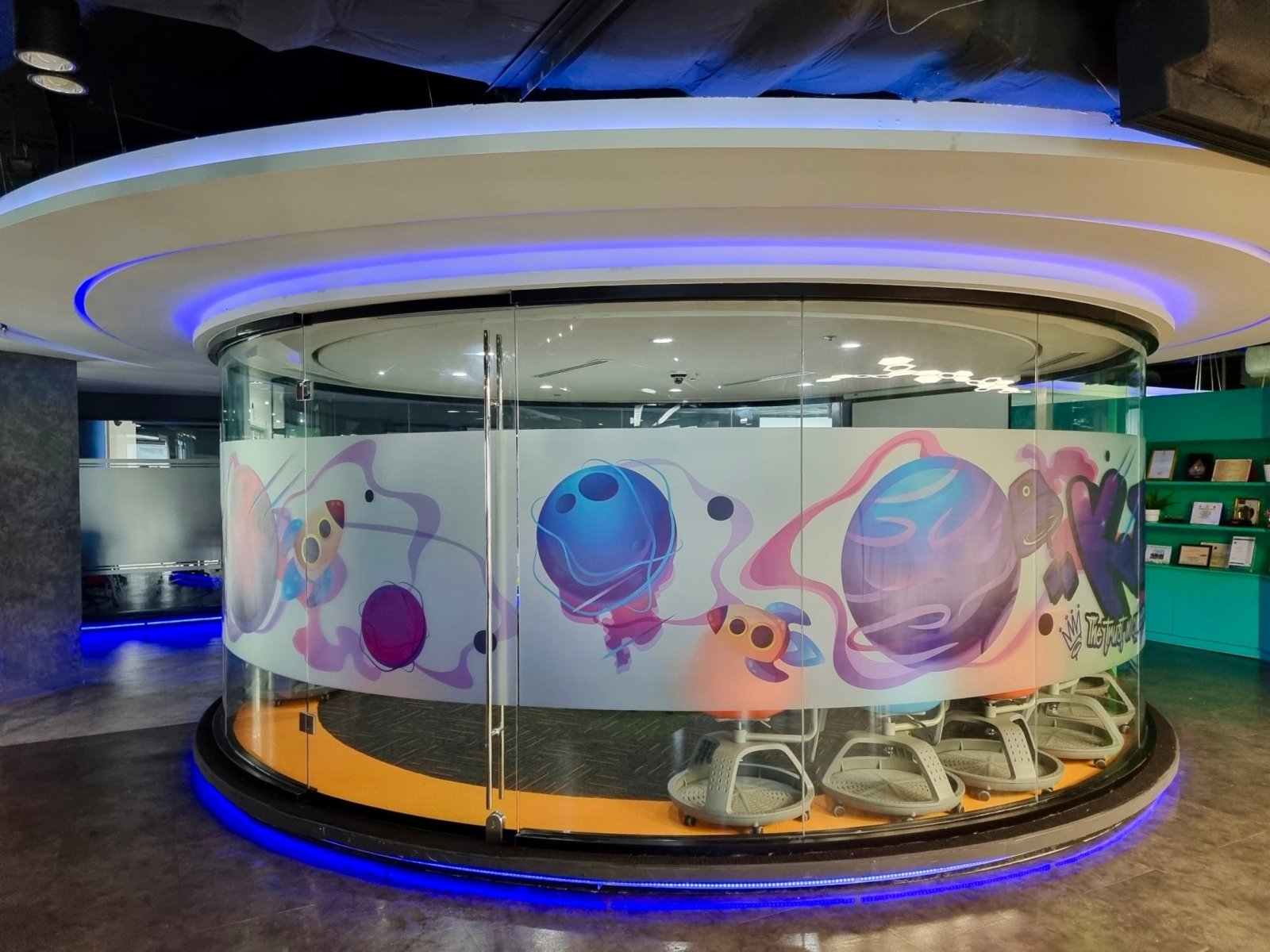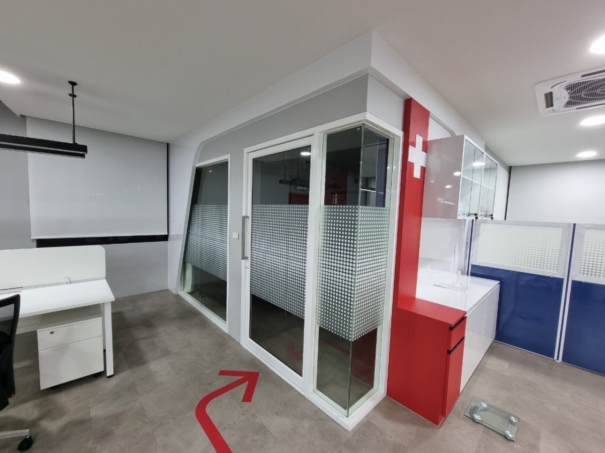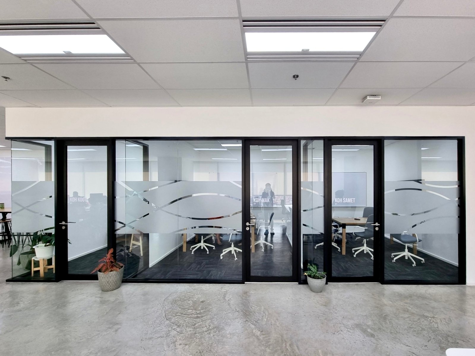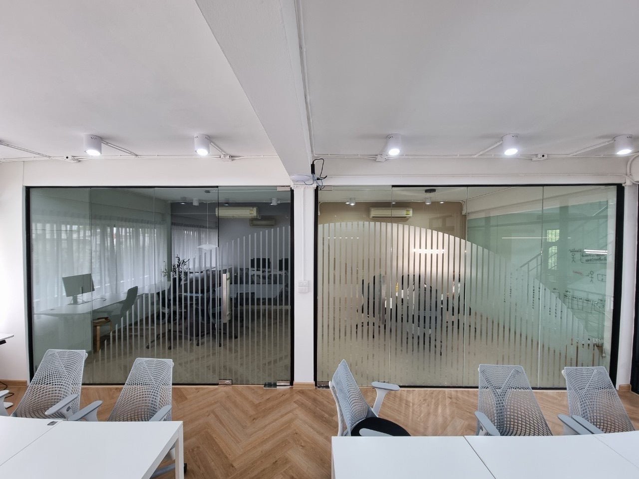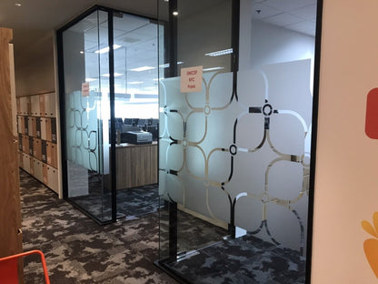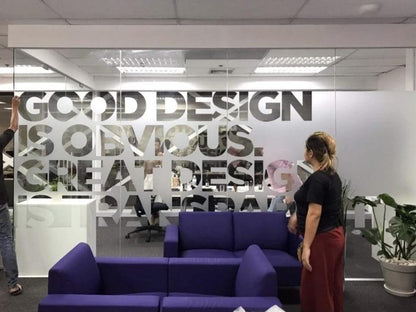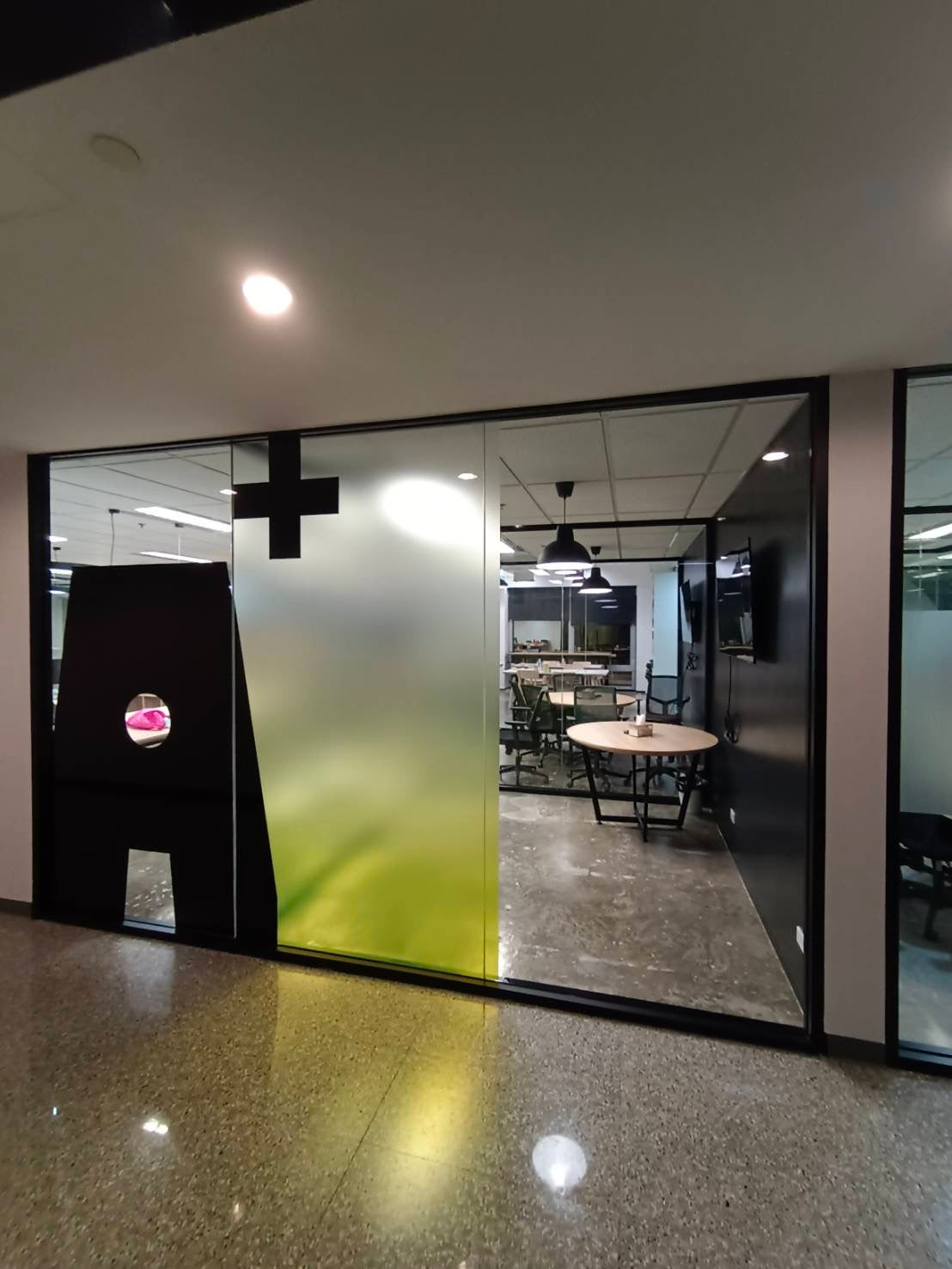 • สติ๊กเกอร์ฝ้าไดคัท สติ๊กเกอร์ฝ้าพิมพ์ลาย ไดคัทเป็นโลโก้องค์กร สติ๊กเกอร์ได้คัทลายตกแต่งออฟิศ ช่วยเพิ่มความสวยงามให้แก่ออฟฟิศ