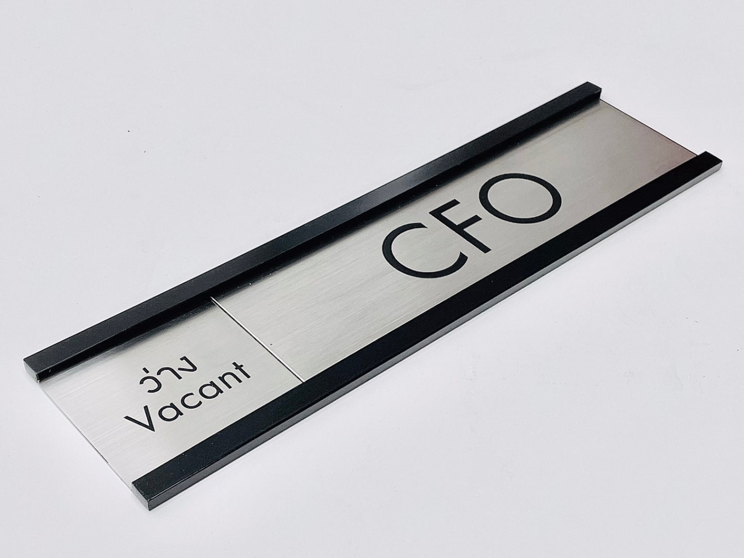 ป้ายรางสอดว่าง/ไม่ว่าง เป็นป้ายที่ช่วยบอกสถานะการใช้งานห้อง สามารถเลื่อนสลับระหว่าง "ว่าง" และ "ไม่ว่าง" ได้สะดวก นิยมใช้ในห้องประชุม ห้องทำงาน ห้องผู้บริหาร ห้องตรวจโรงพยาบาล หรือสำนักงานที่ต้องการจัดการพื้นที่ใช้งานได้ง่าย วัสดุที่ใช้สามารถเป็นอะคริลิก พลาสวูด หรือสแตนเลส ขึ้นอยู่กับความต้องการและความเหมาะสม