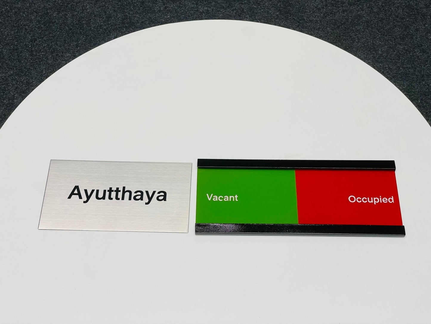 - ป้ายว่าง/ไม่ว่างติดประตู ใช้ในสำนักงานหรือออฟฟิศ ช่วยให้ทราบสถานะการใช้งานของแต่ละพื้นที่